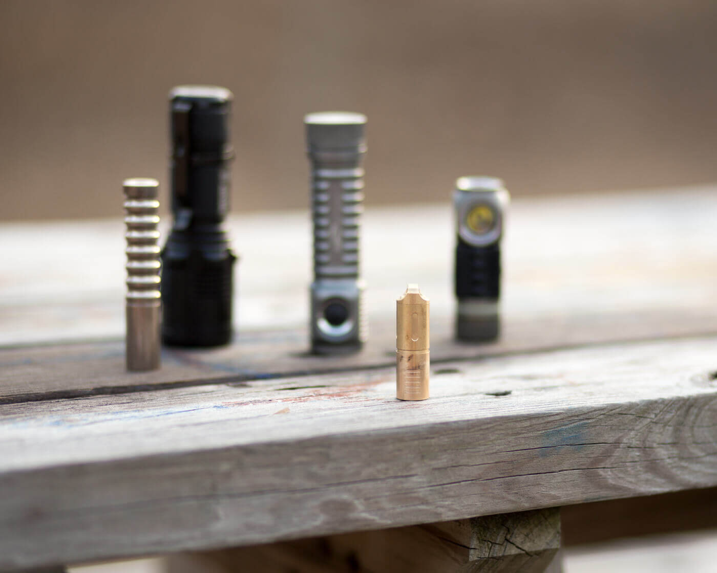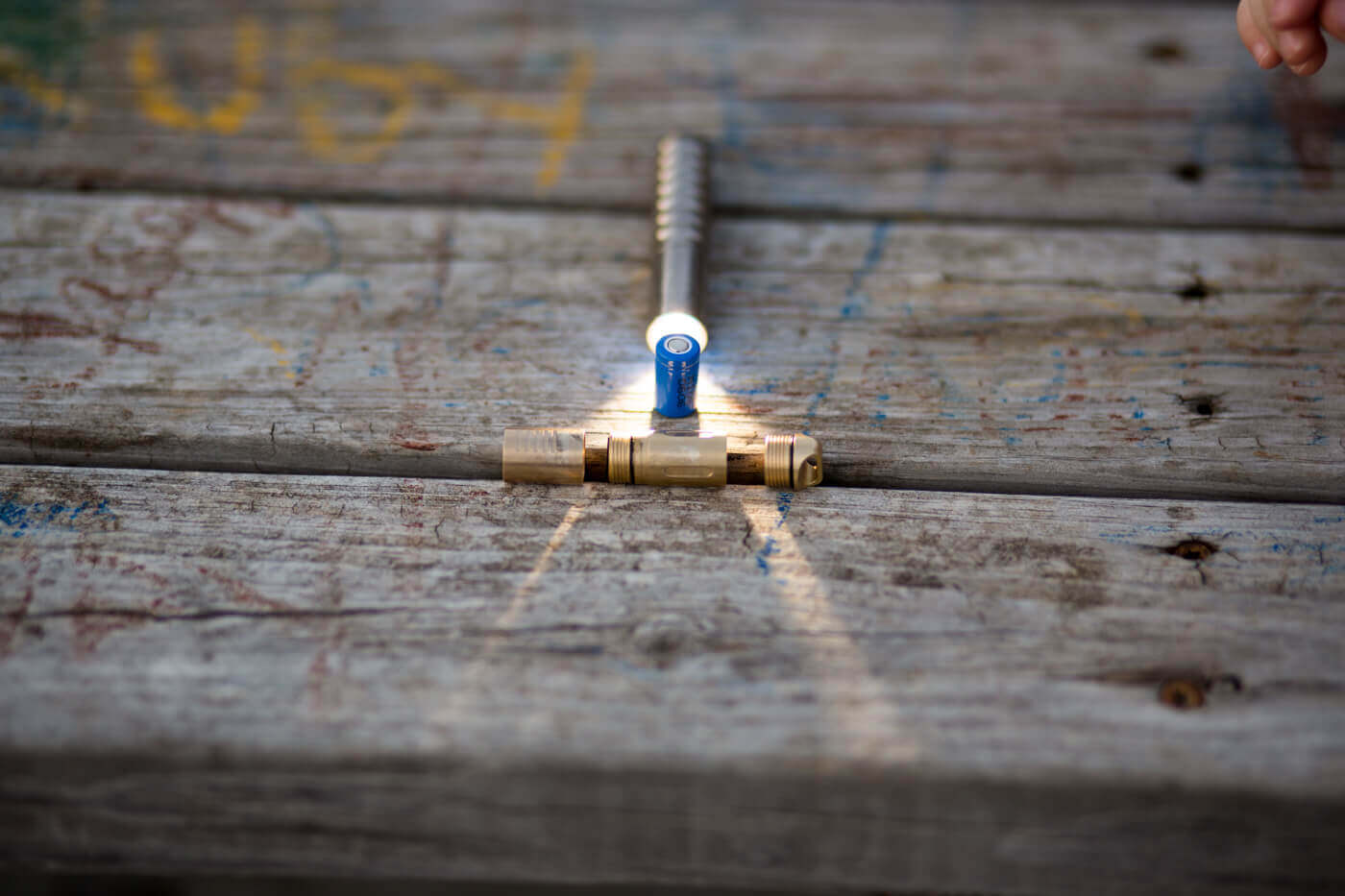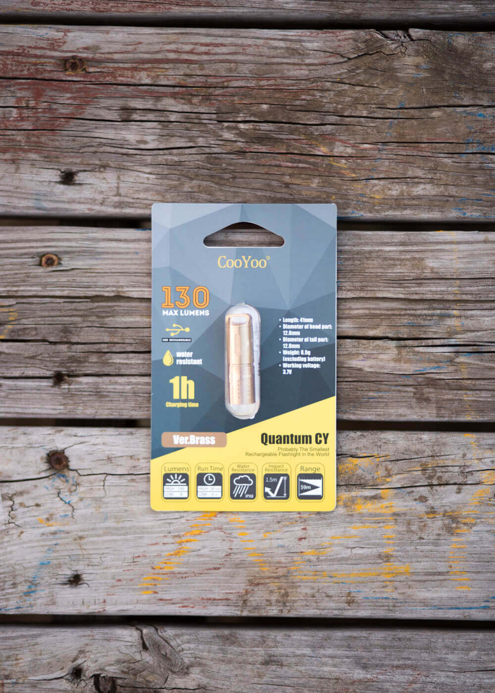 The CooYoo Quantum CY flashlight uses a Cree XP-G2 emitter and a 10180 cell. The body is brass, and it uses a twisty interface. Read on!