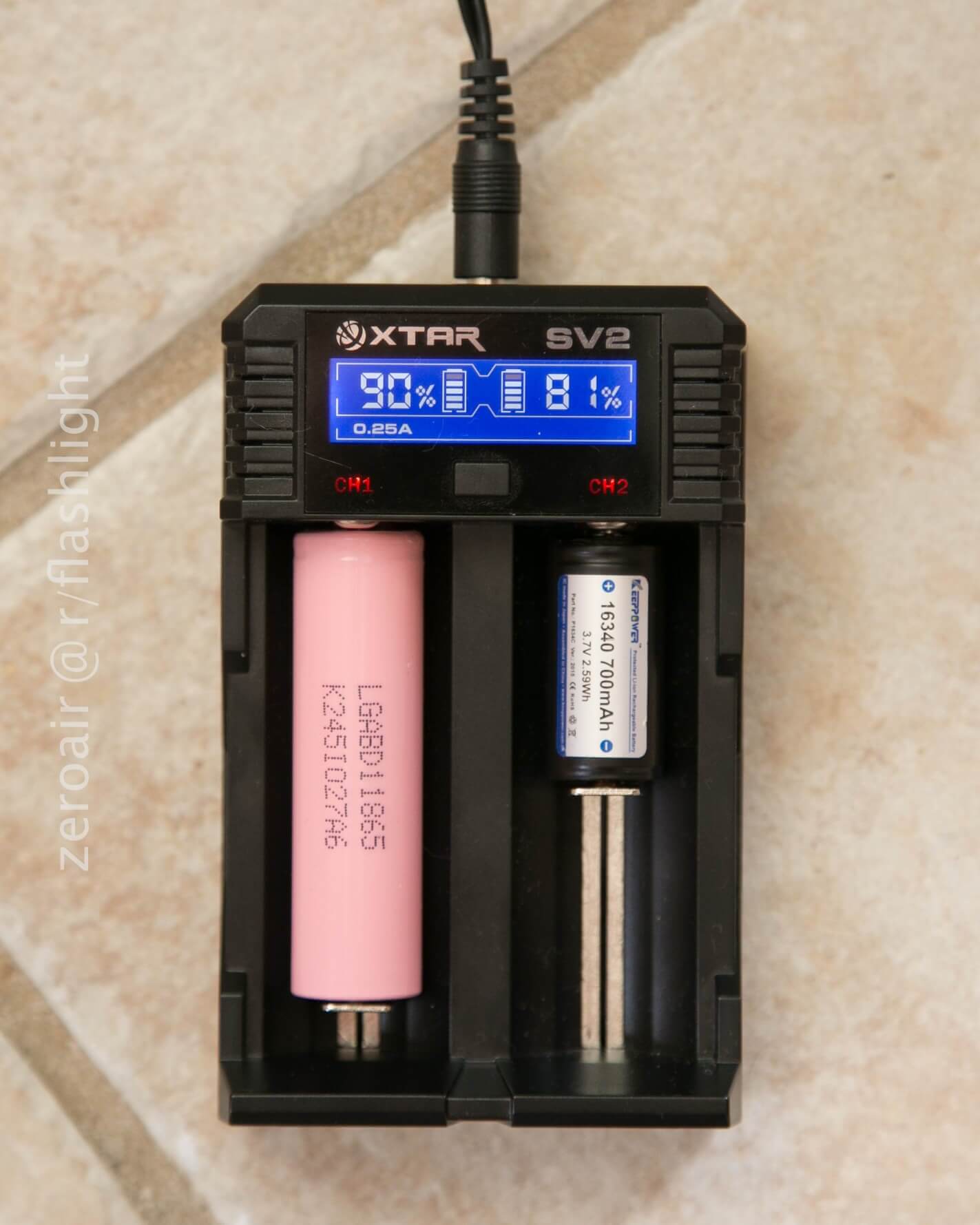 It operates both bays, which can be operated independently. When a cell is inserted, the SV2 immediately begins to check to what “percentage” the cell is charged. From there, clicking the button cycles the choice of charge speed – 0.5A, 1.0A, 2.0A. 0.25A is available too, but that requires a quick double-tap on the button. To turn the display off, just hold the button til it turns off (charging will continue). The button is just slightly slow to respond. Just slow enough that a lot of time I think it didn’t register, so I click it again, only to overshoot the A I was aiming for.