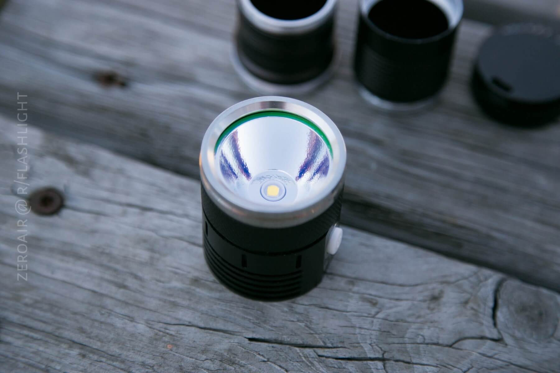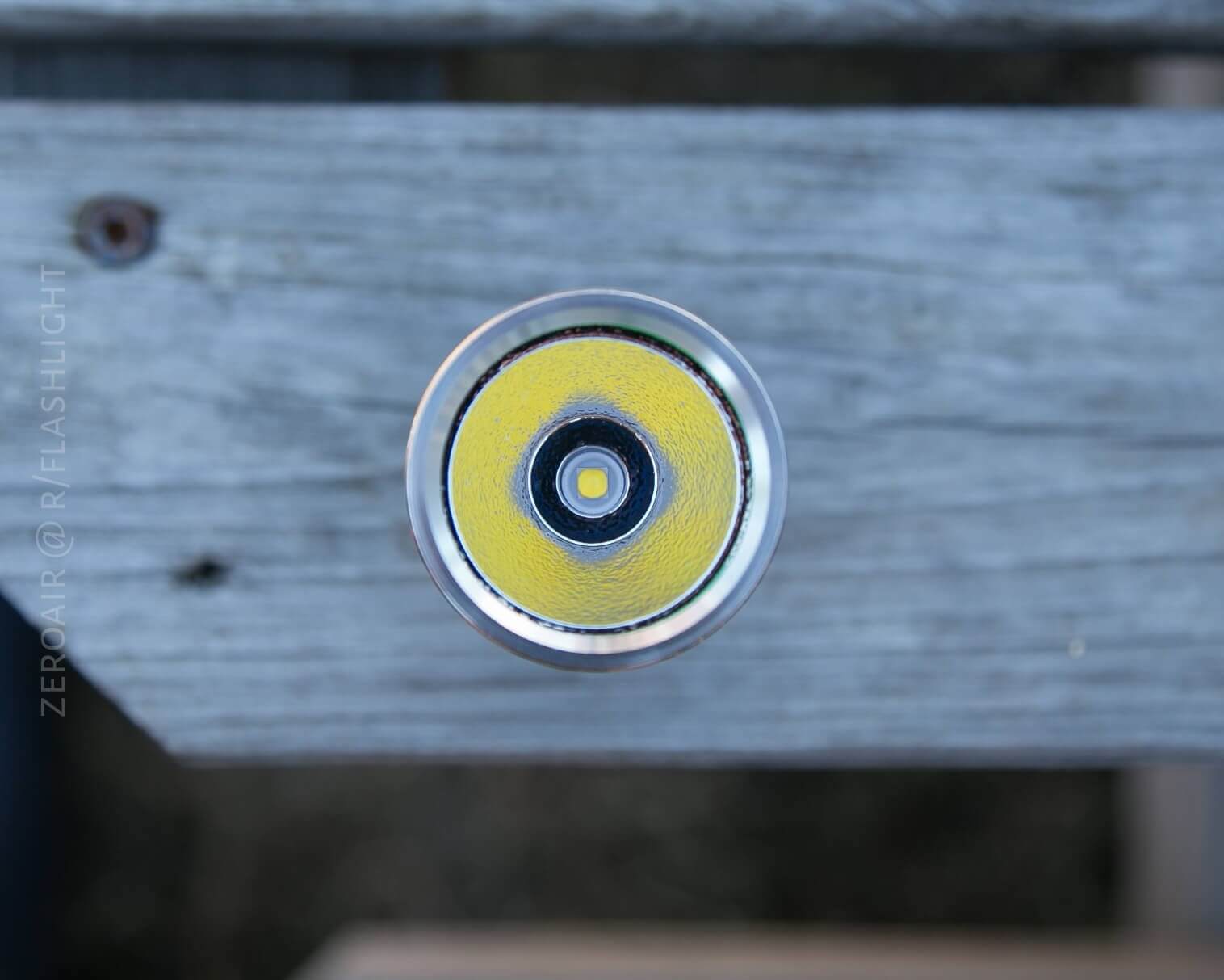 The “HD” part of that indicates this one has a dome – there is a HI version of the emitter, which doesn’t have a dome. The reflector, though shallow, does throw quite well – there’s a distinct spot with little spill.