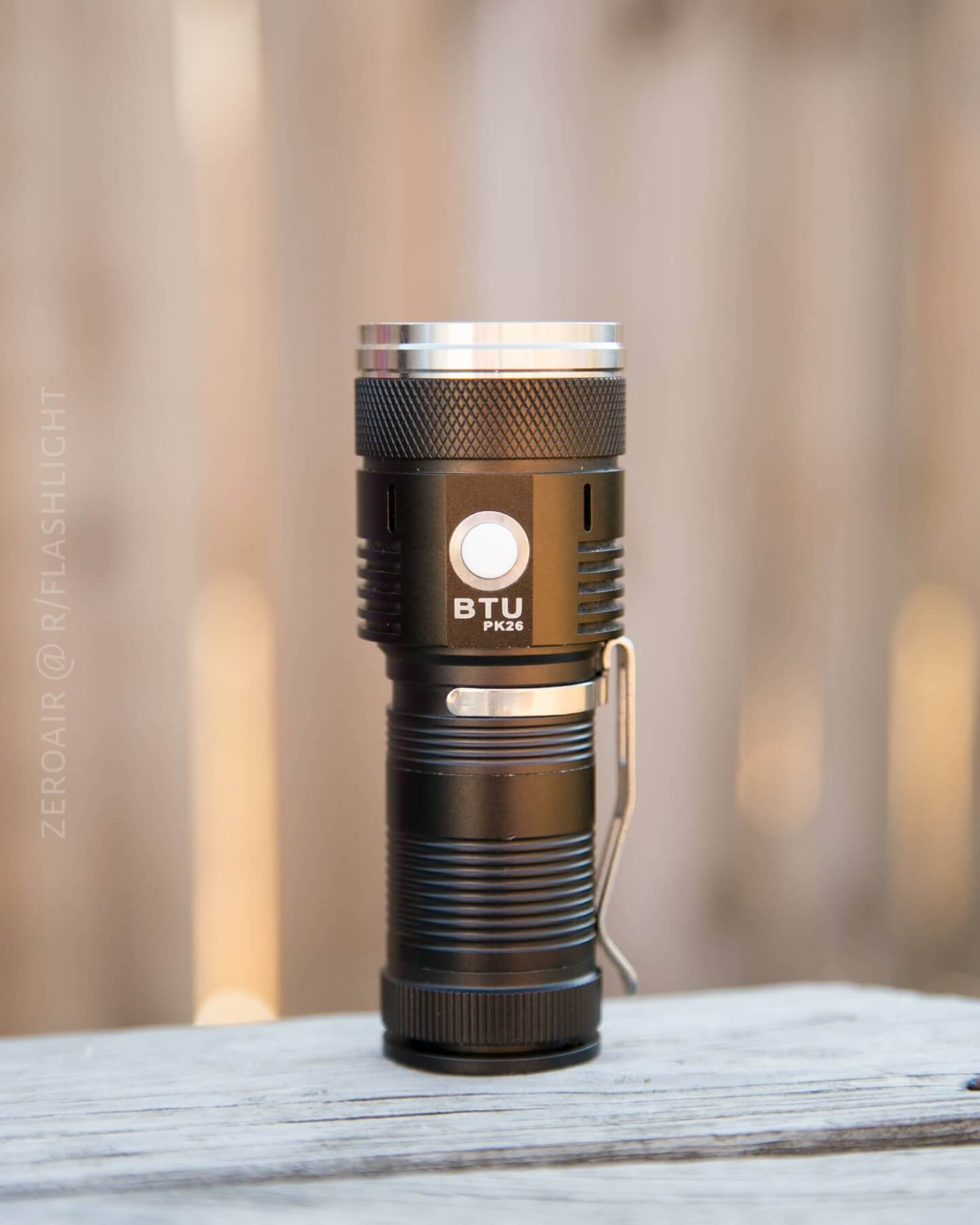 The BTU PK26 flashlight is interesting because it offers an unusual cell: the 26350. It uses a Cree XHP35 HD emitter and an e-switch.