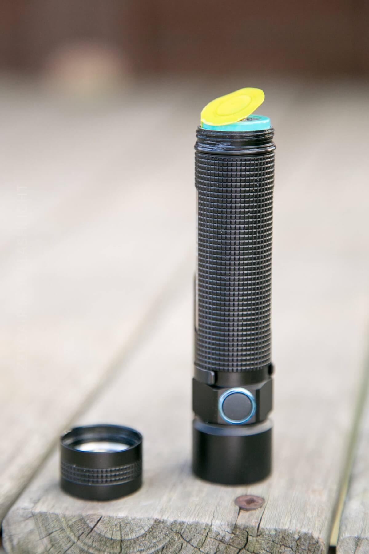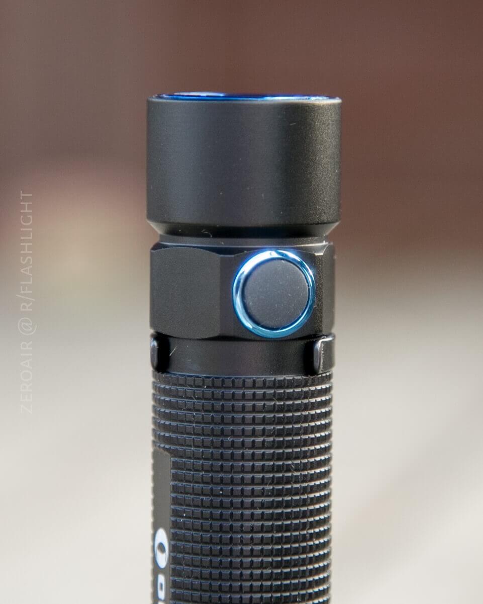 The button is a small (6mm across) black silicone button with a blue retaining ring. It has a nice click with short travel and a relatively quiet sound. That’s it as far as input you can give the light! Easy!