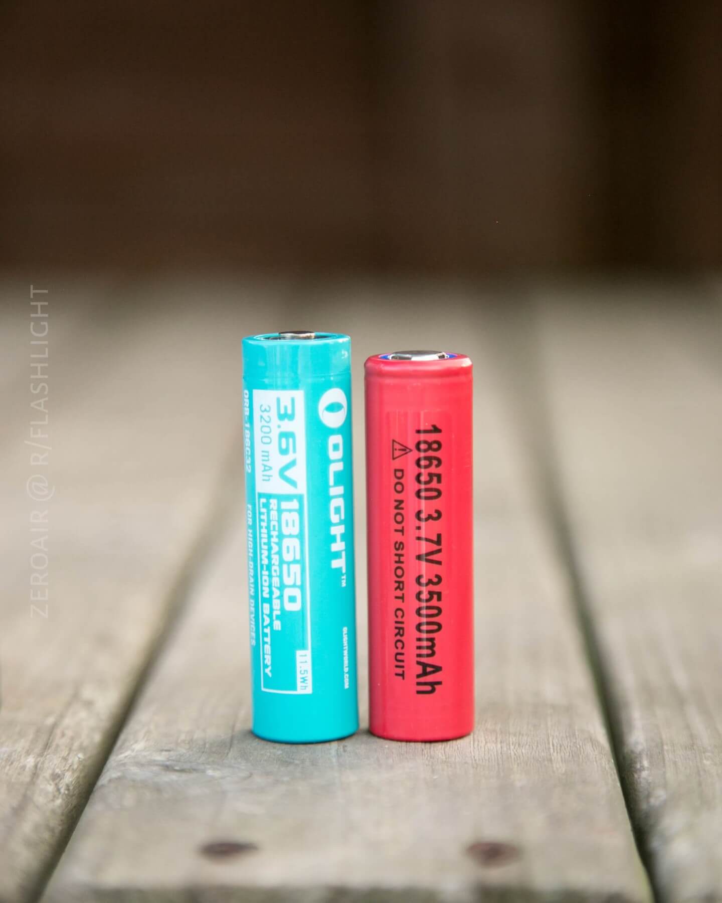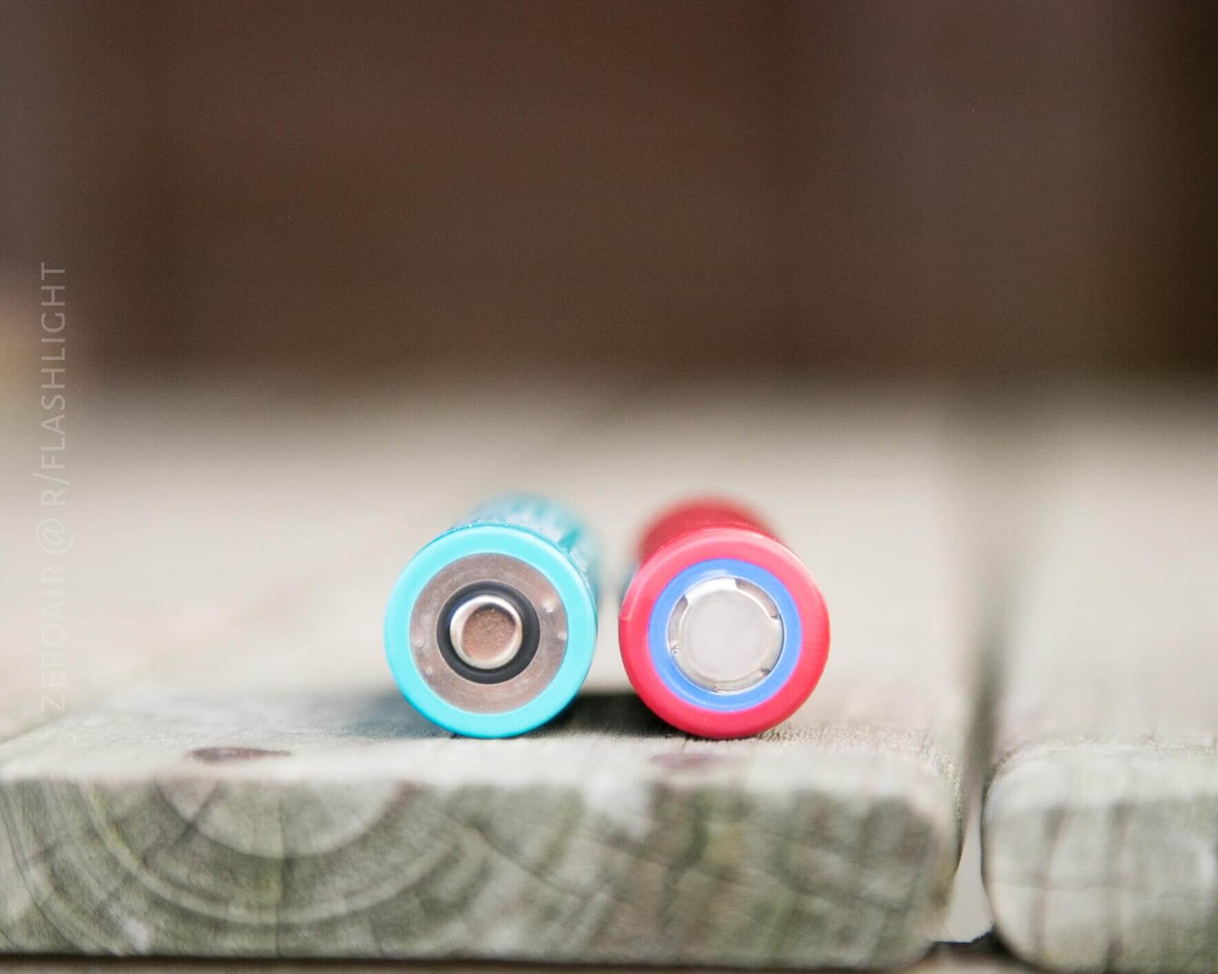 Here’s the 18650 from the S2R compared to a flat top 18650. Much taller, thanks to the protection.