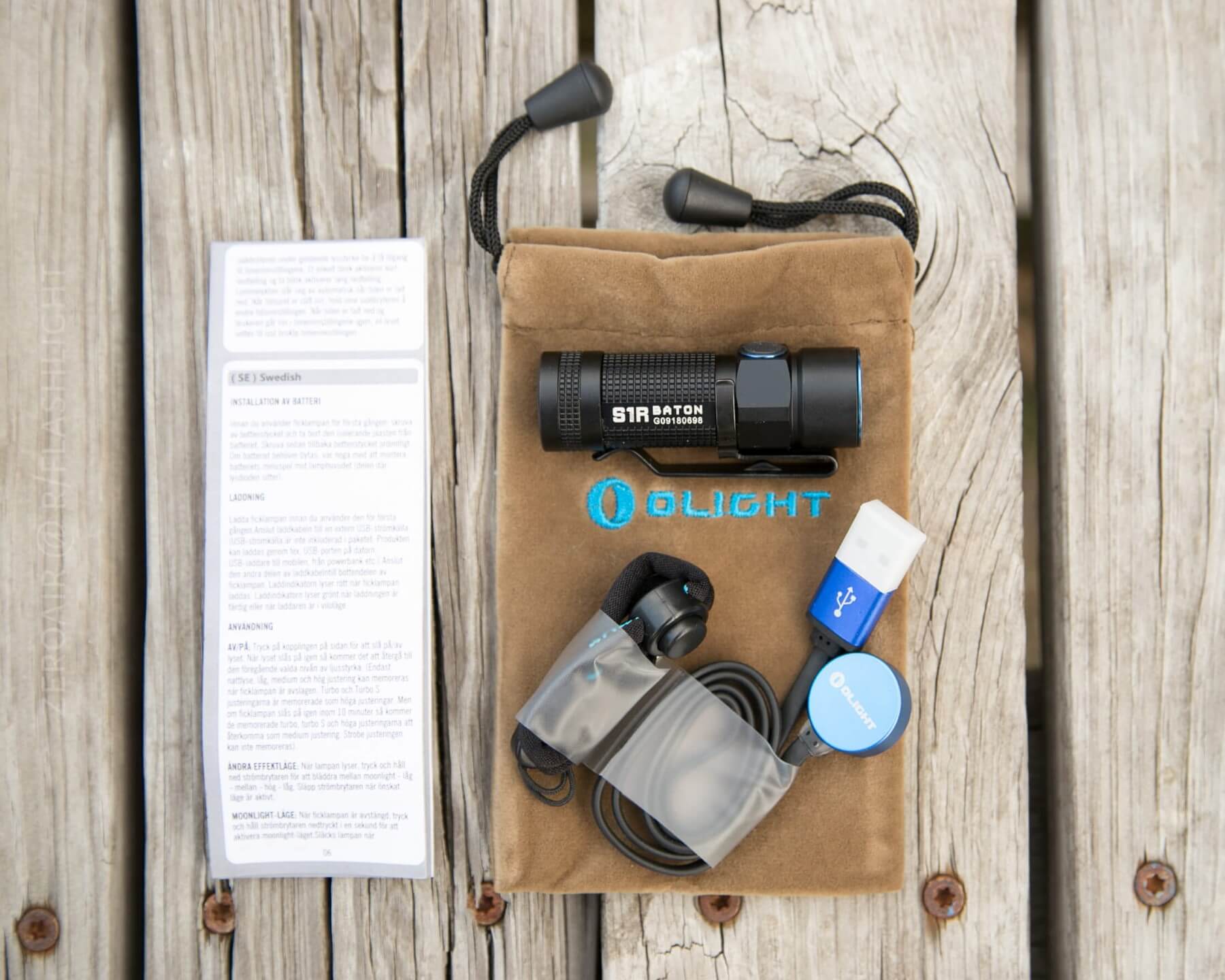 A RCR123 is provided with the light, and for good reason: The onboard charging will only charge that Olight cell. Other cells will work in the light, but they just will not charge. The Olight cell is 550mAh for the S1R v2, and 3200 mAh for the S2R. I’d love for Olight to get away from proprietary cells like these, but that doesn’t seem like the direction Olight (and others) are headed. Maybe the best we can hope for at this point is a good standard cell for these lights? The S2R will work with two CR123’s, as well. You’ll have to remove this little safety shipping plastic before use (they both have it).