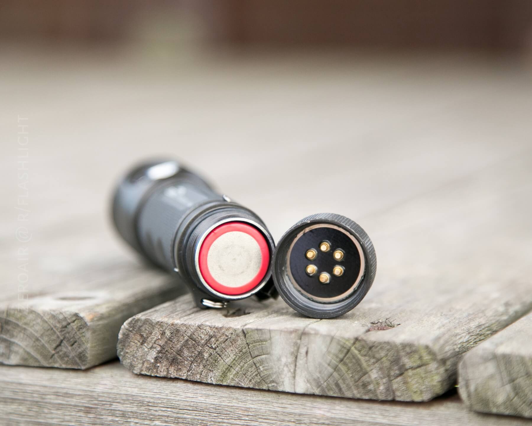 These are springy, but there’s just a very slight amount of movement (1mm at most) in these pogo-pins. The result of this is a shorter cell tube and a shorter light.