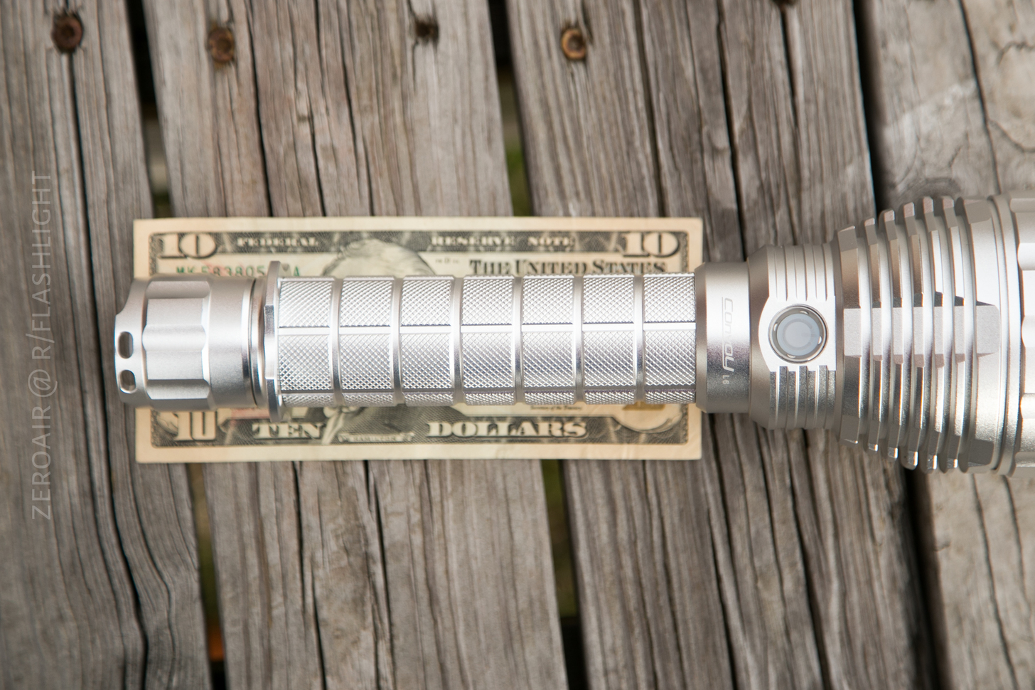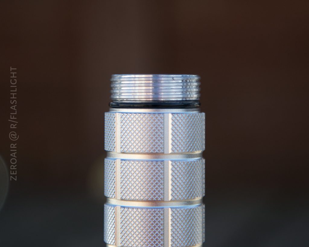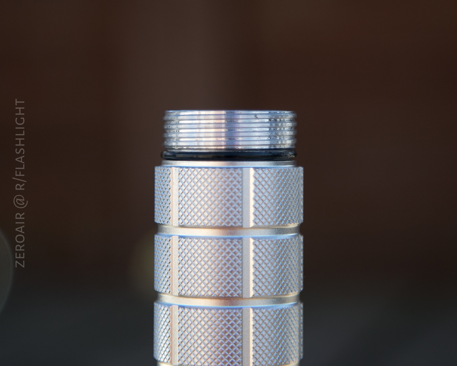 Man. MAN o man this finish is just spectacular. I like it MUCH more than the black finish, which in my experience (with the Convoy C8, not the L6), doesn’t last all that well on sharp corners and such. This is actually a finish of some sort, though what is still being decided…. It’s not just bare aluminum. But wow is it great to handle and use!!