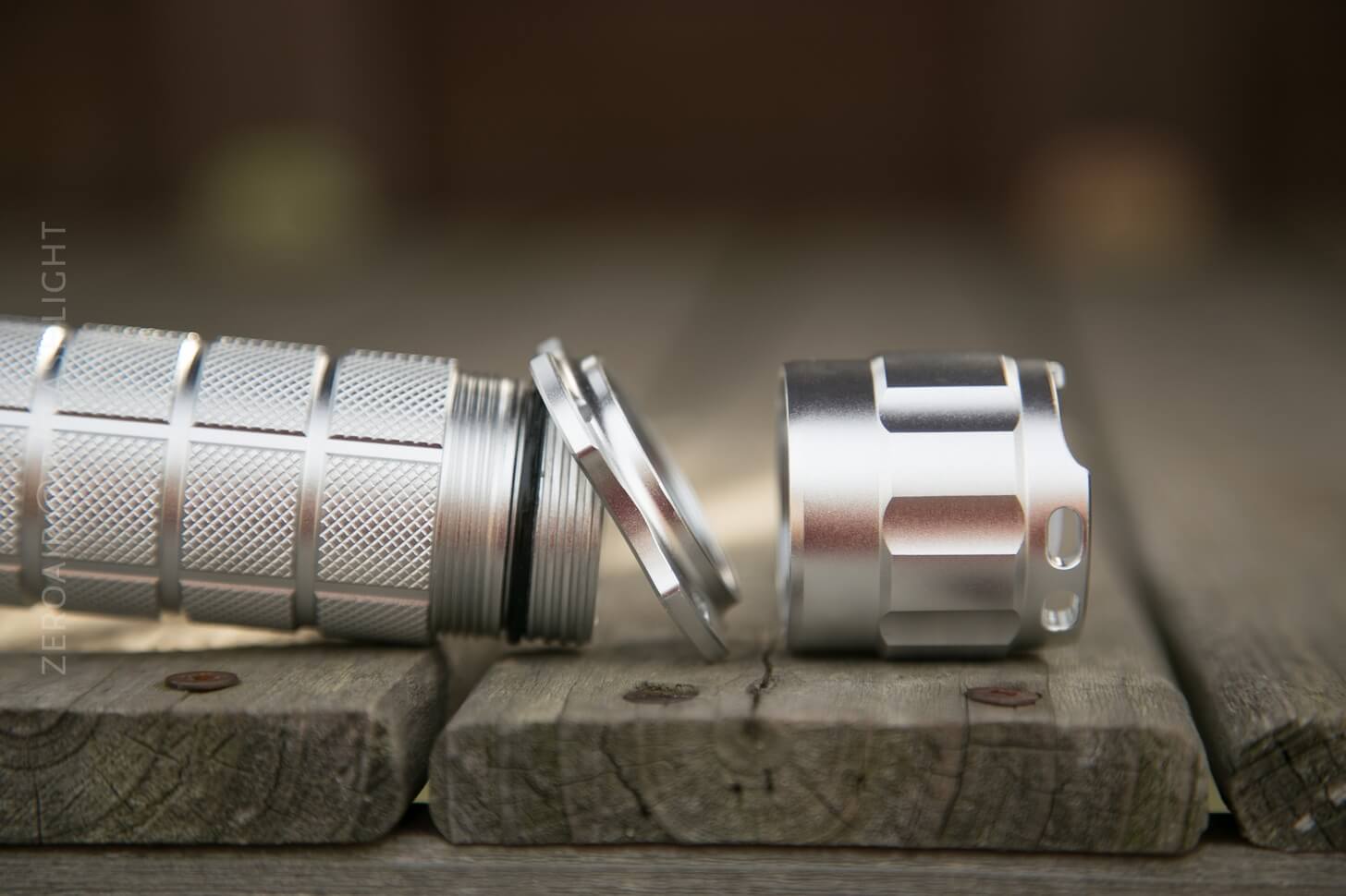 Man, MAN oh man, this finish is just spectacular. I like it MUCH more than the black finish, which in my experience (with the Convoy C8, not the L6), doesn’t last all that well on sharp corners and such. This is actually a finish of some sort, though what is still being decided…. It’s not just bare aluminum. But wow, it is great to handle and use!!