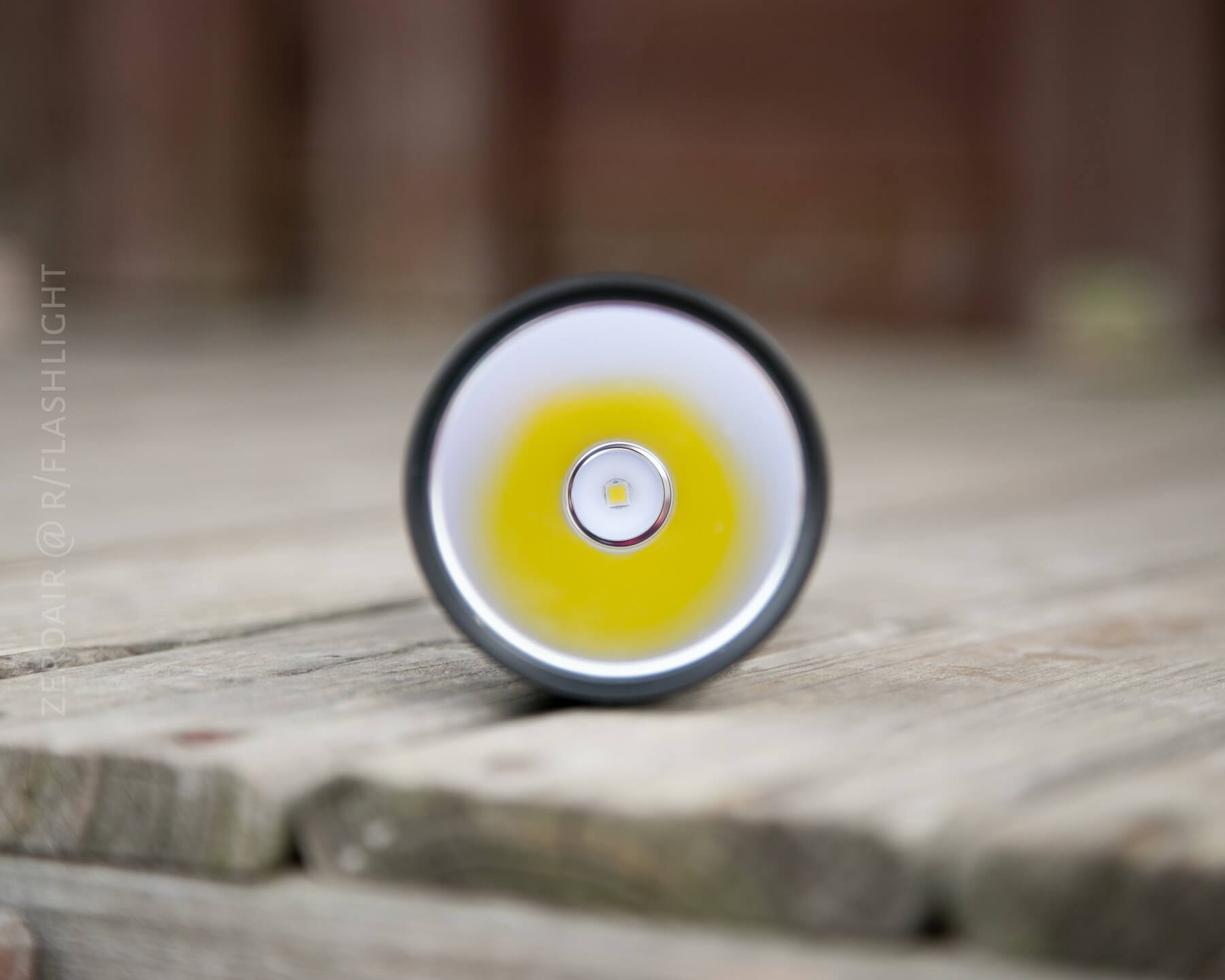 There’s a Cree XHP35 HI behind a very smooth (and to my eye, perfectly flawless) reflector.