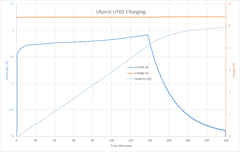 The claim is “2A fast charging,” and while the UT02 does charge higher than 1A, it never quite reaches 2A.