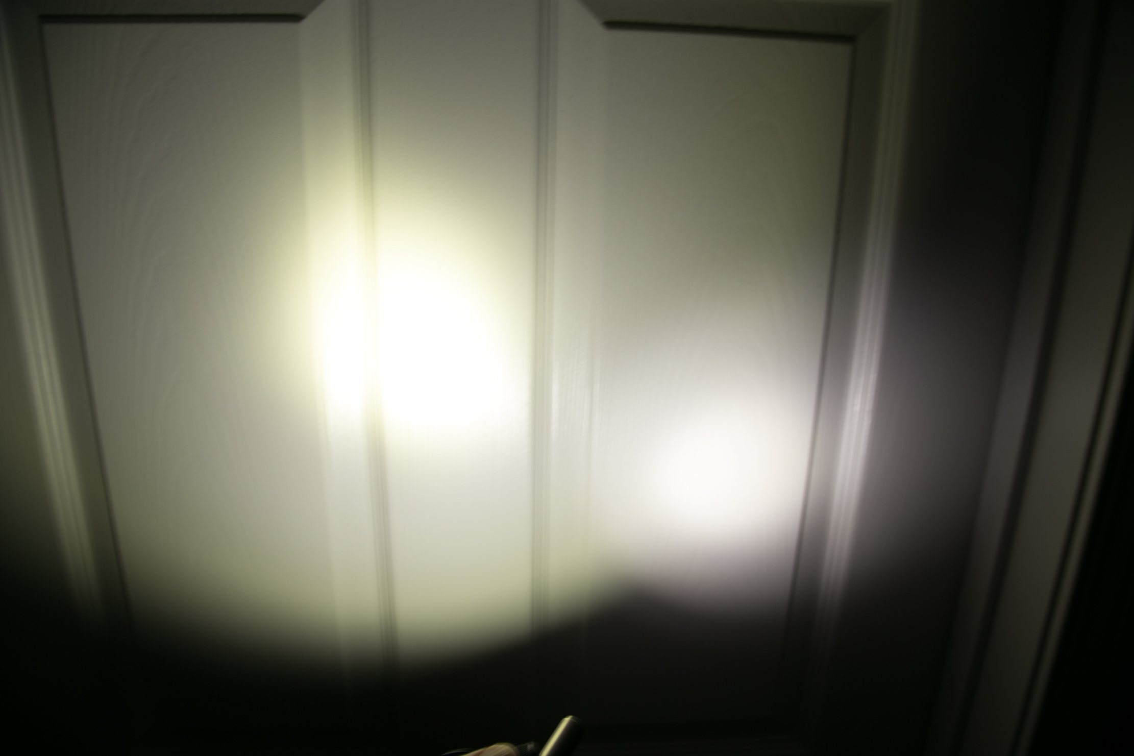 This shallow reflector makes the hotspot not very hot, which is probably just about ideal for a headlamp. The hotspot is reminiscent of a TIR, but with much more spill.