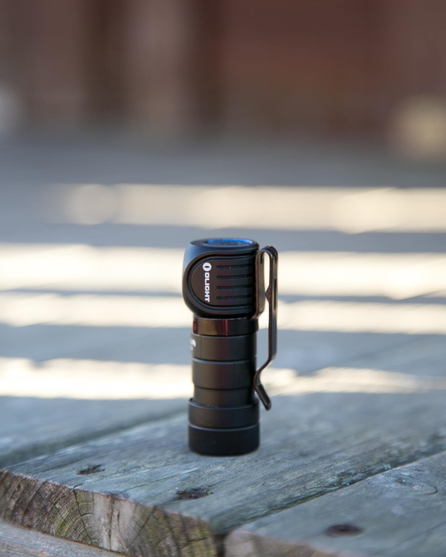 Here’s the Olight H1R Nova flashlight, a right-angle flashlight. It runs on a single 16340 cell and uses a Cree XM-L2 emitter. Read on for more info!