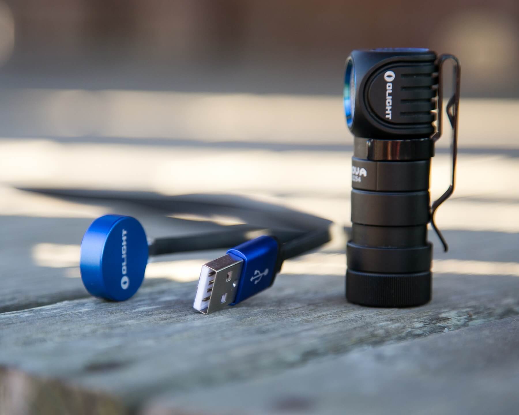 Olight includes a USB-to-base charging cable.