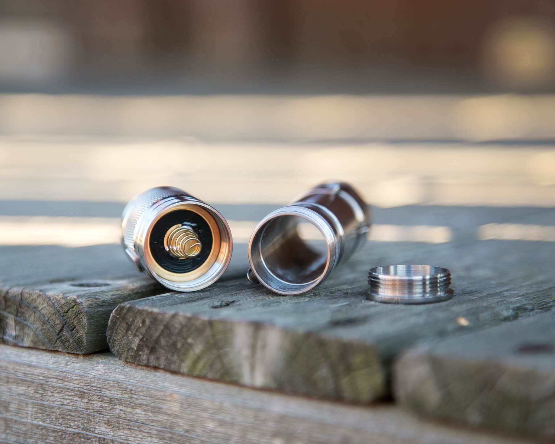 A single 18650 fits in the BTU Mini. The cell tube is very narrow – so narrow that my protected 18650s would not fit!