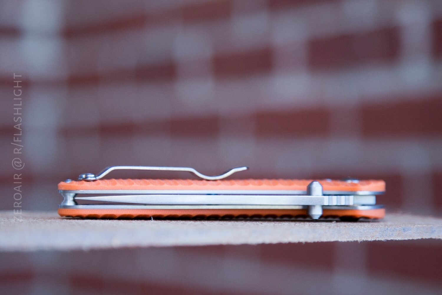 This is a huge (“huge”) orange knife. I got more than one comment on this knife at work, and more than one of those wasn’t effusively positive. But those who are accustomed to being around larger knives will likely love this one for its color and wavy scales. The vibe here is fantastic.