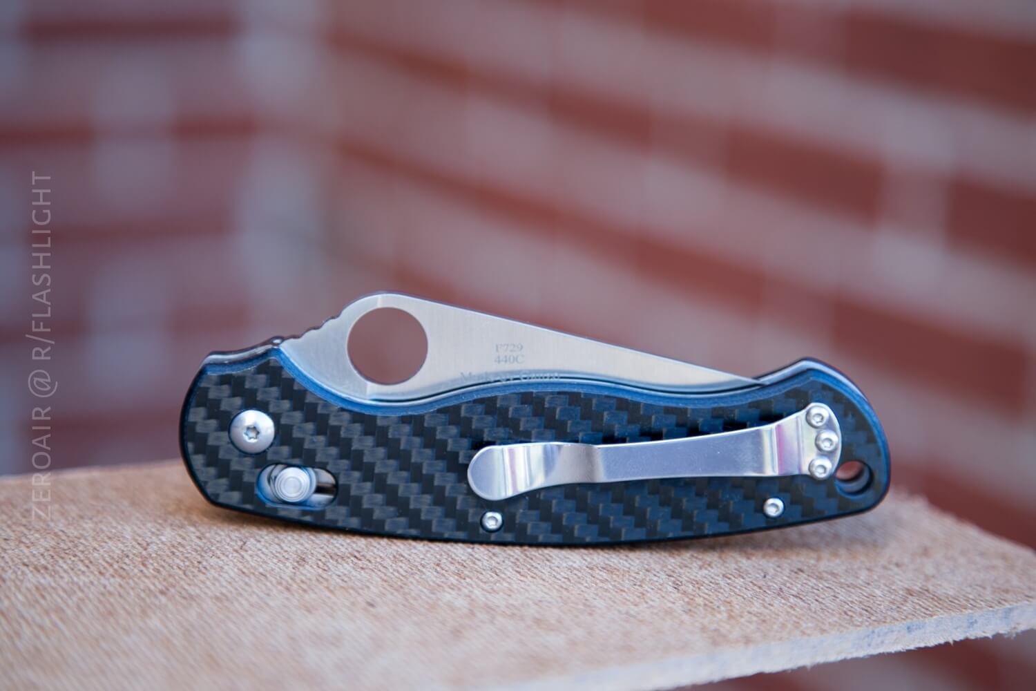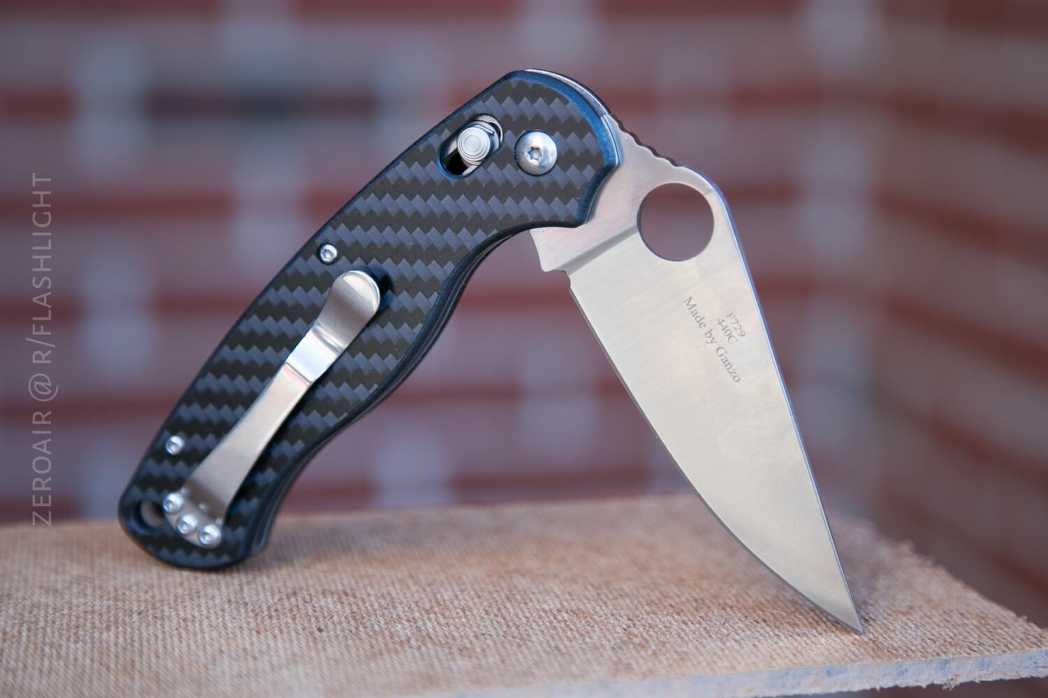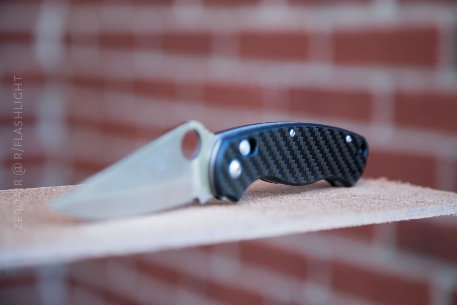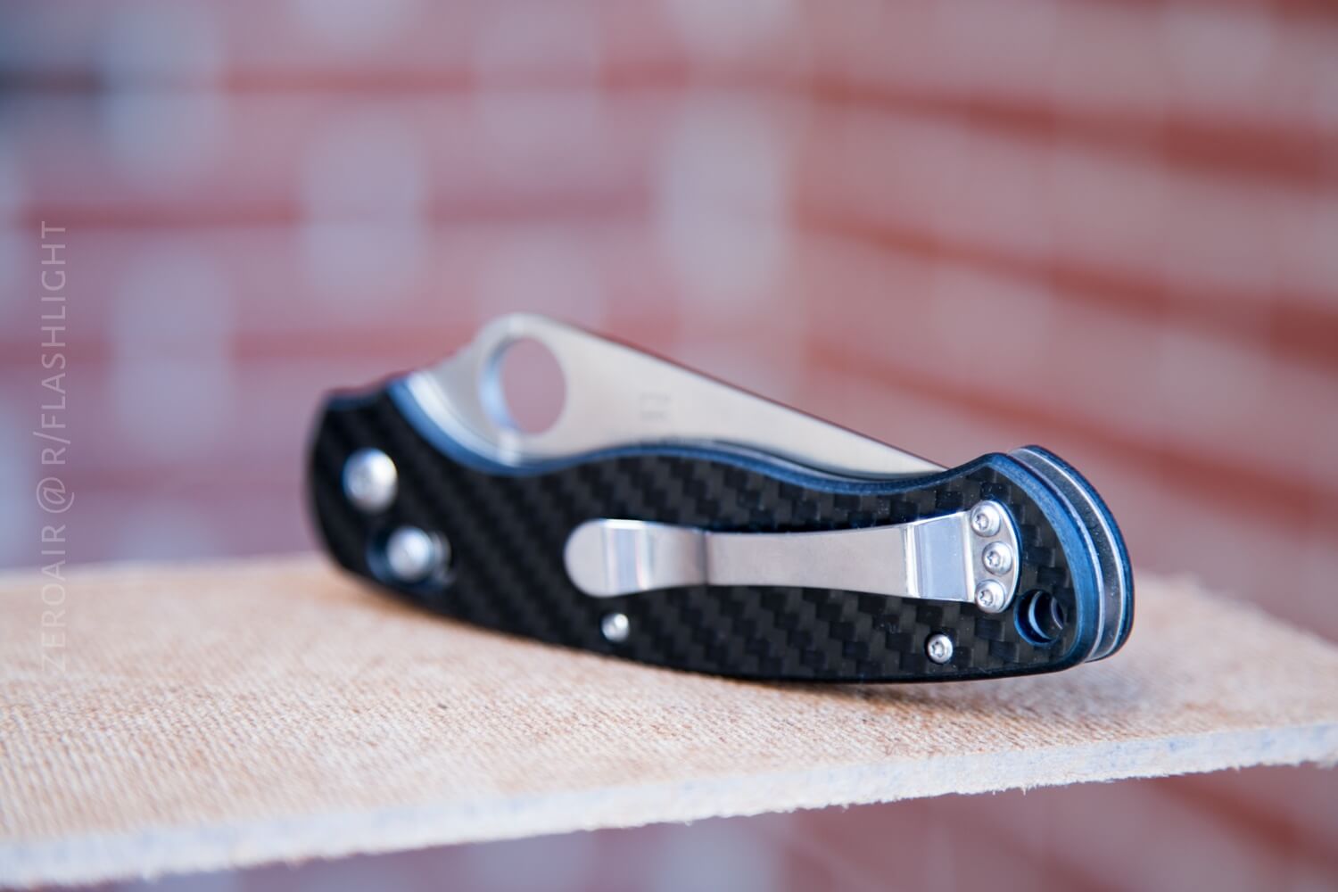 The monochrome and carbon fiber on this knife give it a great look. It could have a ridiculously good vibe if some of these screws or accent pieces were some other random color – orange maybe? 🙂