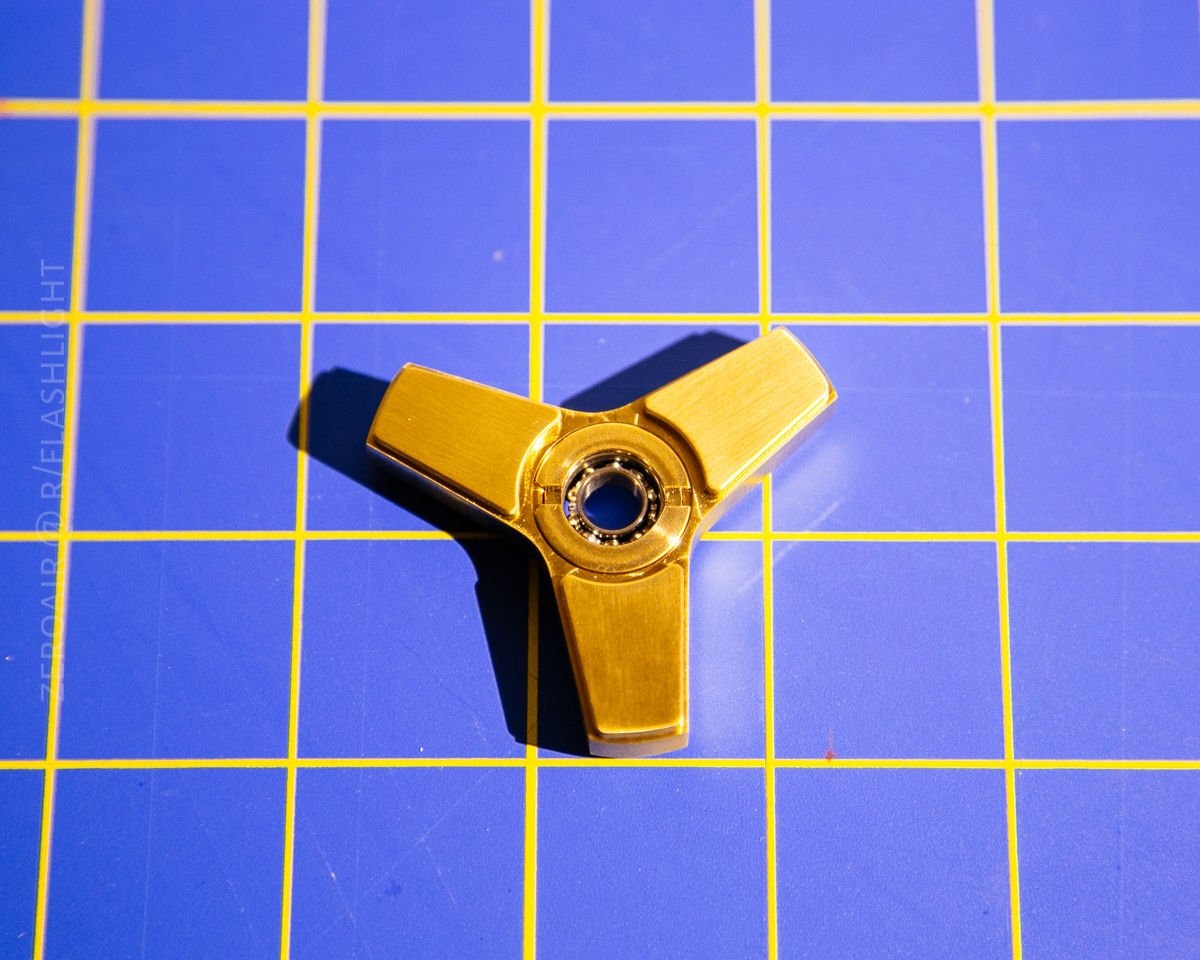 Here’s the Infinity Fidget Spinner Pro i5, a brass tri-wing spinner with an r188 bearing. Read on for thoughts and spin times!