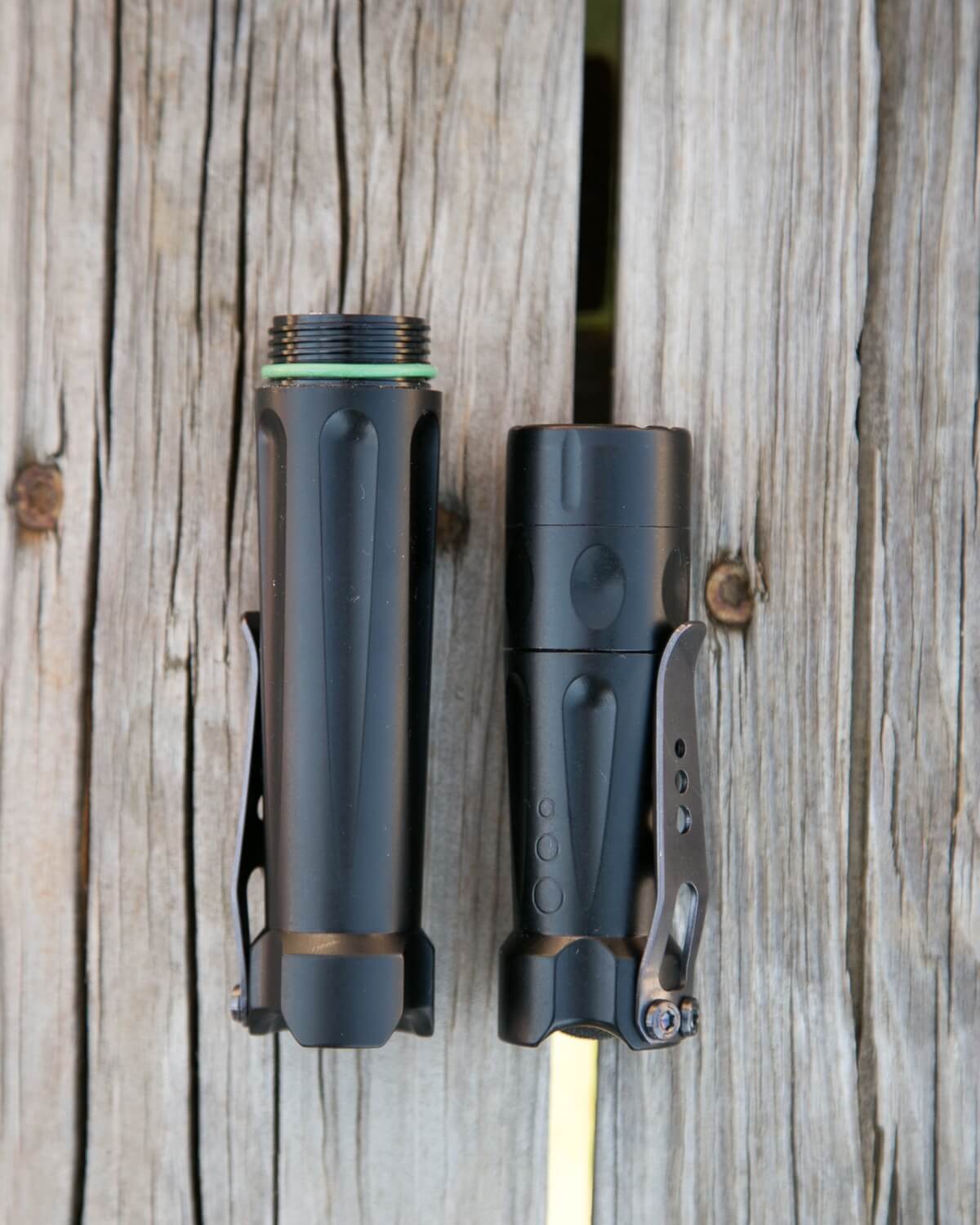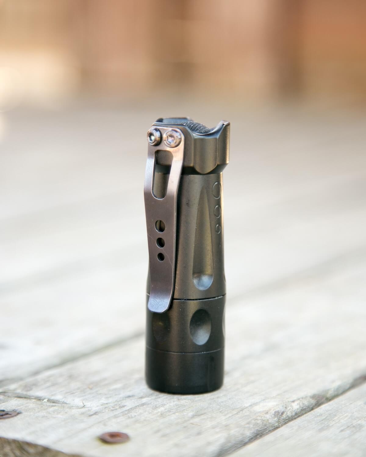 There’s an installed pocket clip, and that’s the only included option. The pocket clip, as shipped, is extremely tight. Other users have removed the clip and stretched it a little, but I have just used mine for a month or so, and it’s just about the right amount of tightness now. Still tighter than all my other clips, but usably tight. Fortunately, there’s no knurling on the light at all, so placing the clip-on pants doesn’t cause any abrasion.