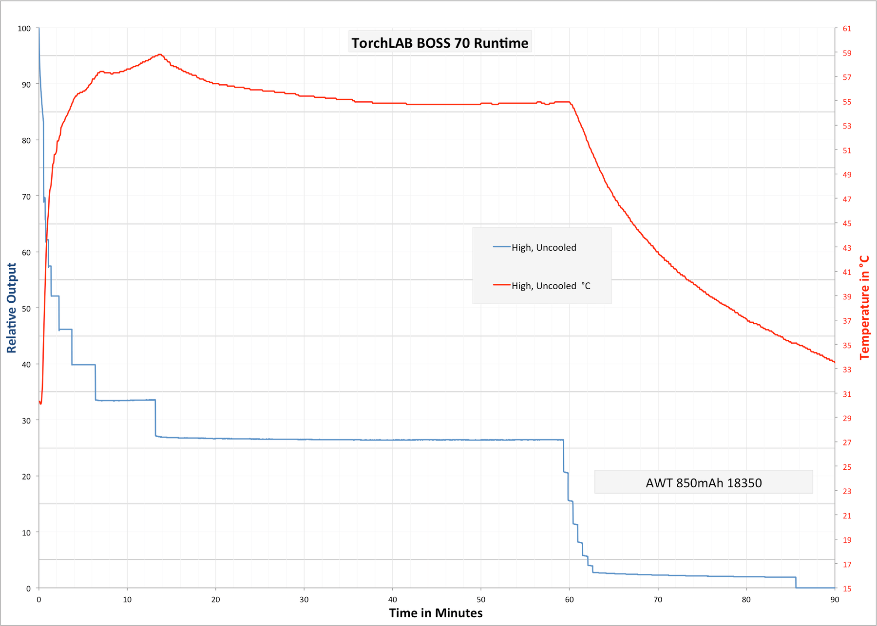 BOSS 70 (18650): Tested using NCR18650GA 3500mAh 10A Unprotected