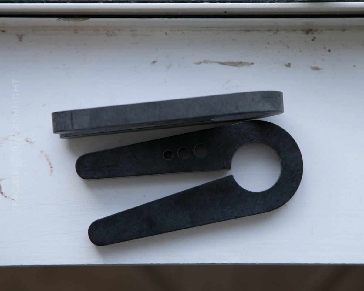 There’s a narrow TIR optic to complement the throwy XP-L HI. I actually don’t have a huge preference here, but I like the beam profile of the BOSS just fine. Since optics are so cheap, and the boss has a completely standard optic, it’s easy to buy and try other optics. Floody, medium, and narrow are the other choices, and some or all of those are available as frosted. So there are plenty of choices, and the optic is very easy to change. Note that depending on how you ordered your BOSS, you may or may not need a special tool to unscrew the bezel. Some, for a short while, were shipped with the bezel tightened down so much that unscrewing them was effectively impossible. TorchLAB has designed a set of wrenches – very clever wrenches, might I add – that will allow very easy removal. I bought a set both for removing my bezel and just to quell my curiosity on what Oveready had come up with. They work absolutely fantastically, and they’re very clever to boot. What’s more, they allow easy access with zero potential for damaging the finish on the light. That was important to me and was done well.