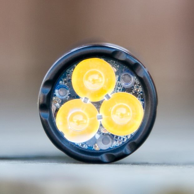 My BOSS has three Cree XP-L HI emitters and one red secondary emitter. Other choices are available. The XP-L HI of choice is 4000K, which is quite warm in all honesty. I wouldn’t complain about it, but it really is quite warm. I still believe it’s the best choice of the bunch.