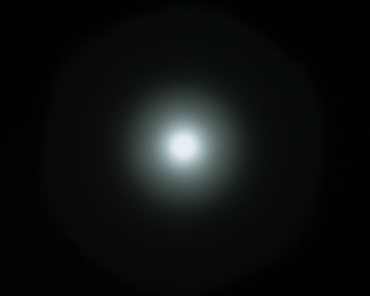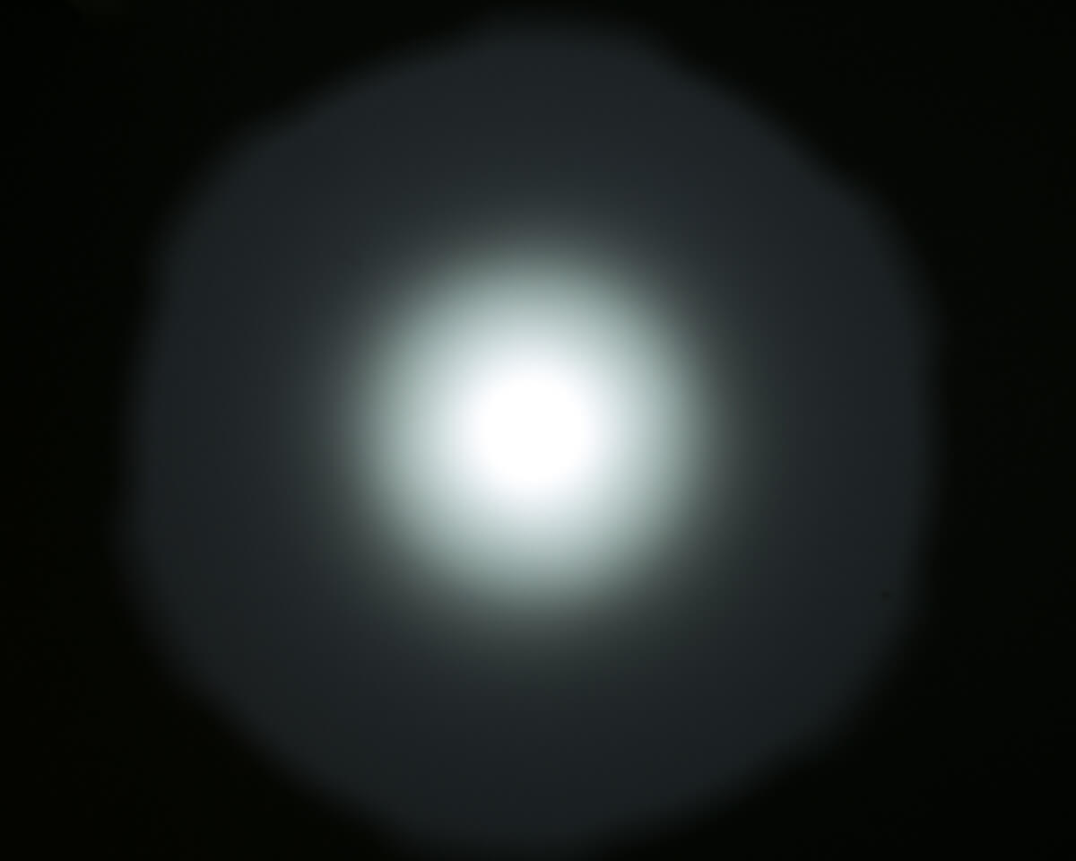 A smooth reflector makes a very intense spot, but I didn’t measure the throw to be quite as good as stated. Rated at 603m, I measured 513m. Still a very throwy light! The spot is so intense, in fact, that one might not even notice the spill until the highest mode.