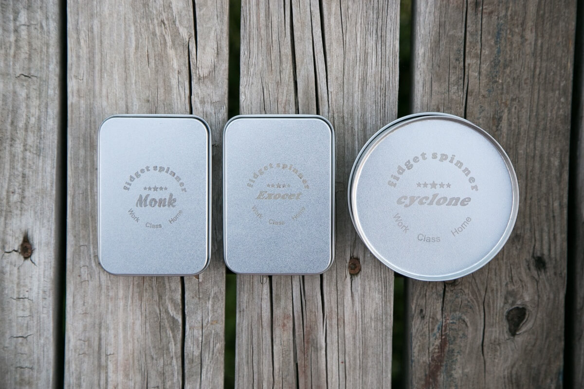 This spinner arrives in a round tin. The tin-top has a window, which allows immediate viewing of the spinner – a nice touch. The back of the tin has the name “Cyclone” printed. Inside the tin, the spinner is held securely in a foam insert. There’s no manual or paperwork.