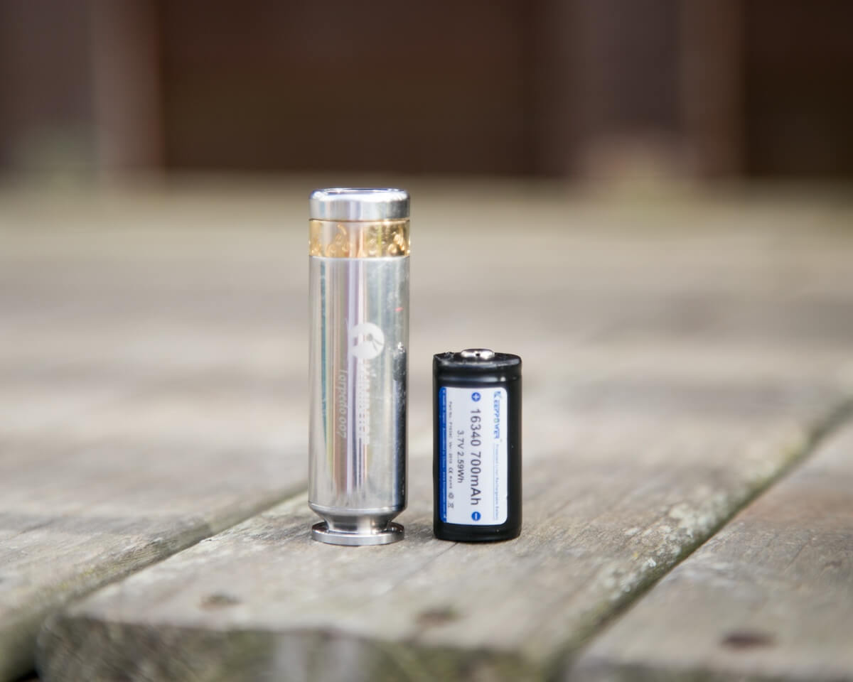 The only other available stainless steel CR123A light I can think of is the Olight S Mini. That’s definitely a fun light. It’s shorter and thicker than the Torpedo, and lacks a certain…. torpedo…. look. Both are e-switch lights, but the S Mini has a side switch, a pocket clip, and has the beam profile of a TIR (because it has a TIR!). Deciding between these two will probably come down to how you’ll actually use it, not the feature set. The Torpedo wins for “gentlemanly carry” type use.