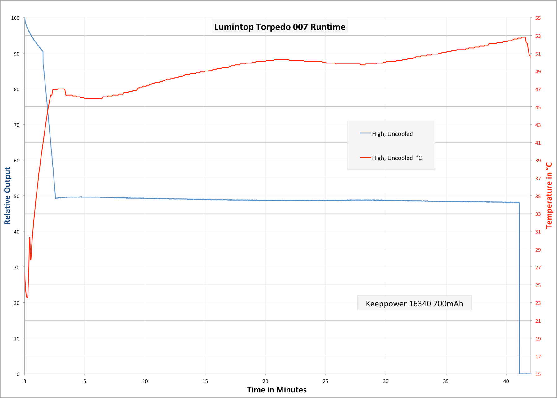 Nothing spectacular, but the runtime does hold very steady for about 40 minutes after the stepdown(s). Temperature does seem to creep up, however.