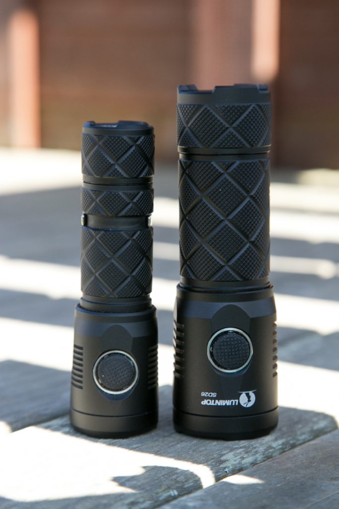 It’s slightly bigger than the Zebralight SC600Mk III HI shown here. I have yet to put the ZL to the meter, but I’d imagine the throw to be similar. Of course, that light lacks charging, and costs more than twice as much (but the tint is better!).