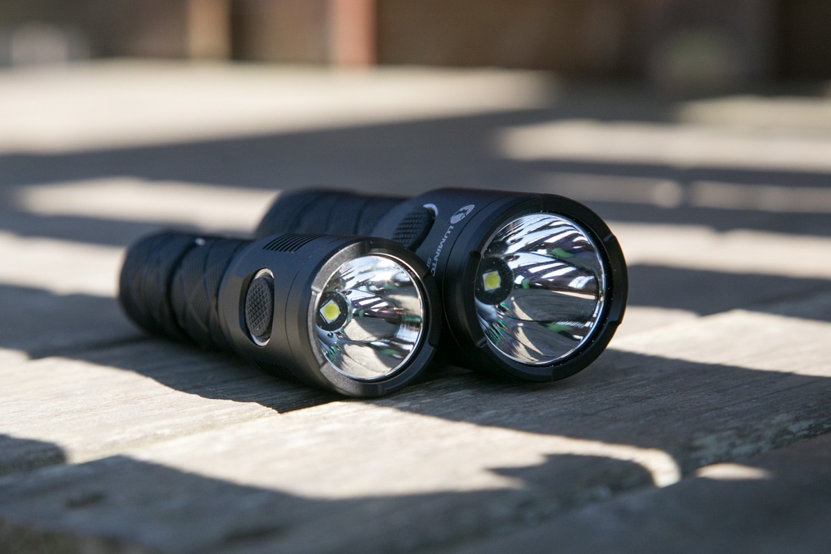 It’s slightly bigger than the Zebralight SC600Mk III HI shown here. I have yet to put the ZL to the meter, but I’d imagine the throw to be similar. Of course, that light lacks charging, and costs more than twice as much (but the tint is better!).