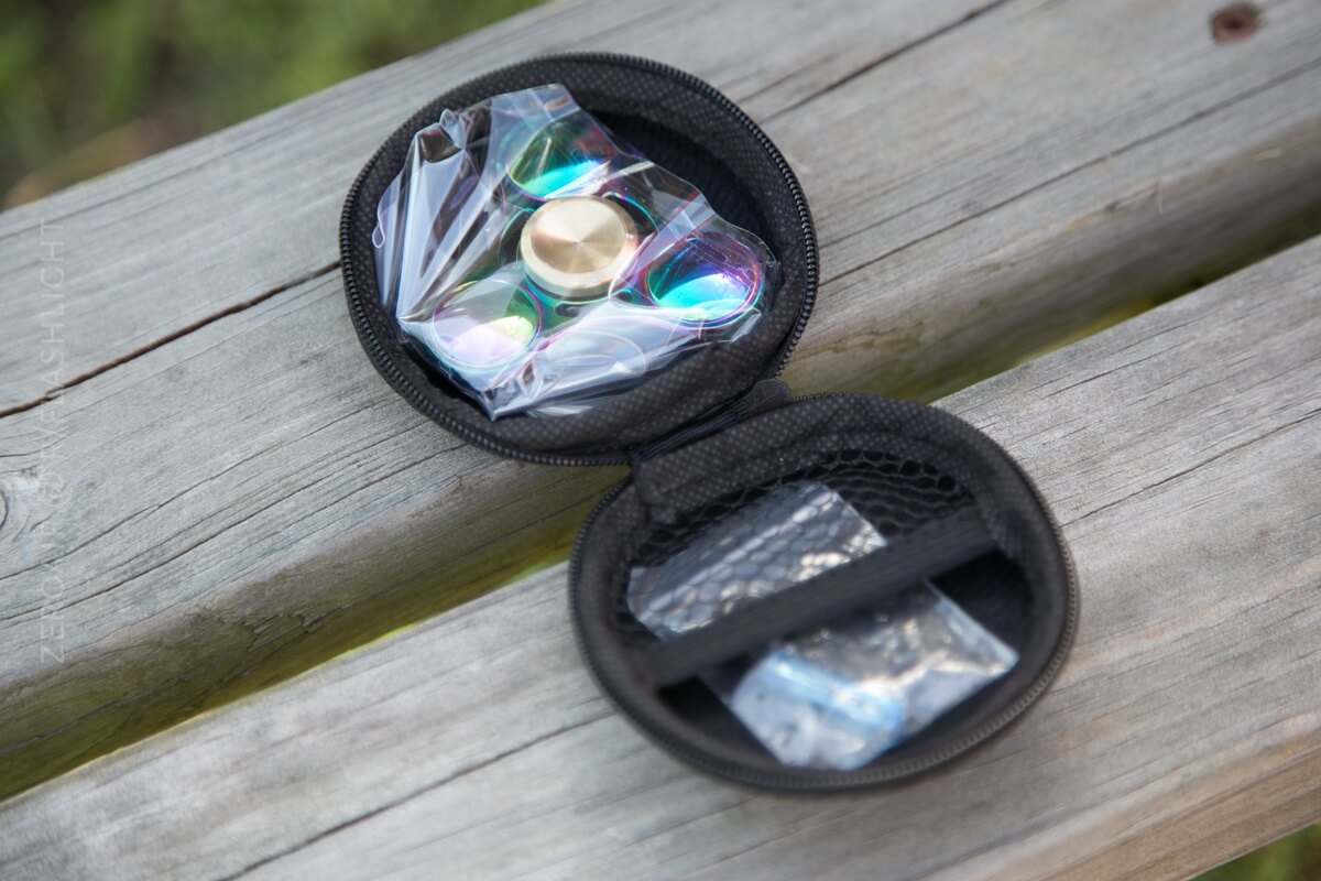 This one comes in the “nicest” case I’ve seen from these Chinese sites – it arrived in a nice little carry pouch, which not only protects the spinner very well but also has a pocket for some accessories. And surprisingly, there are actually accessories included: A tiny screwdriver and an extra bearing!!