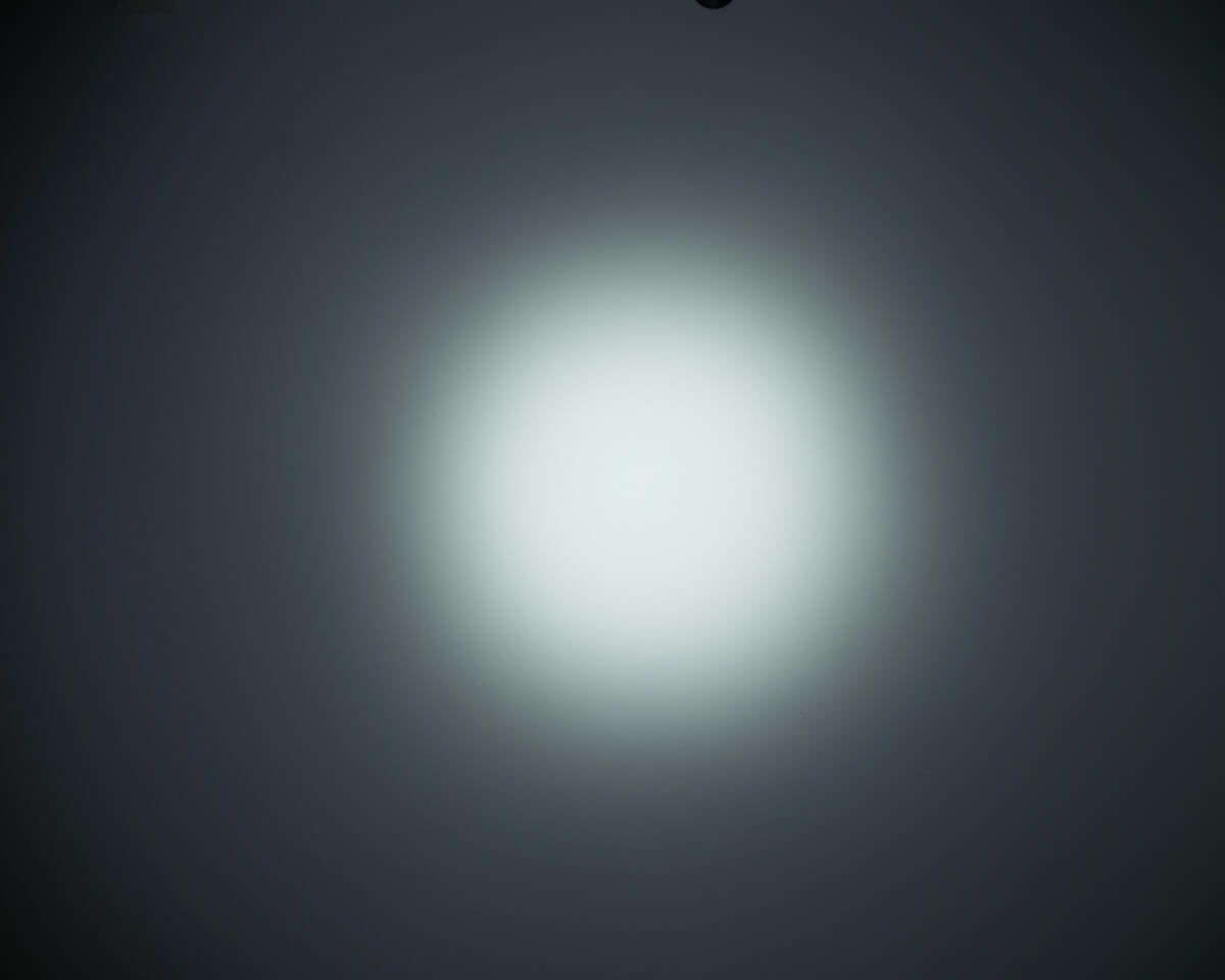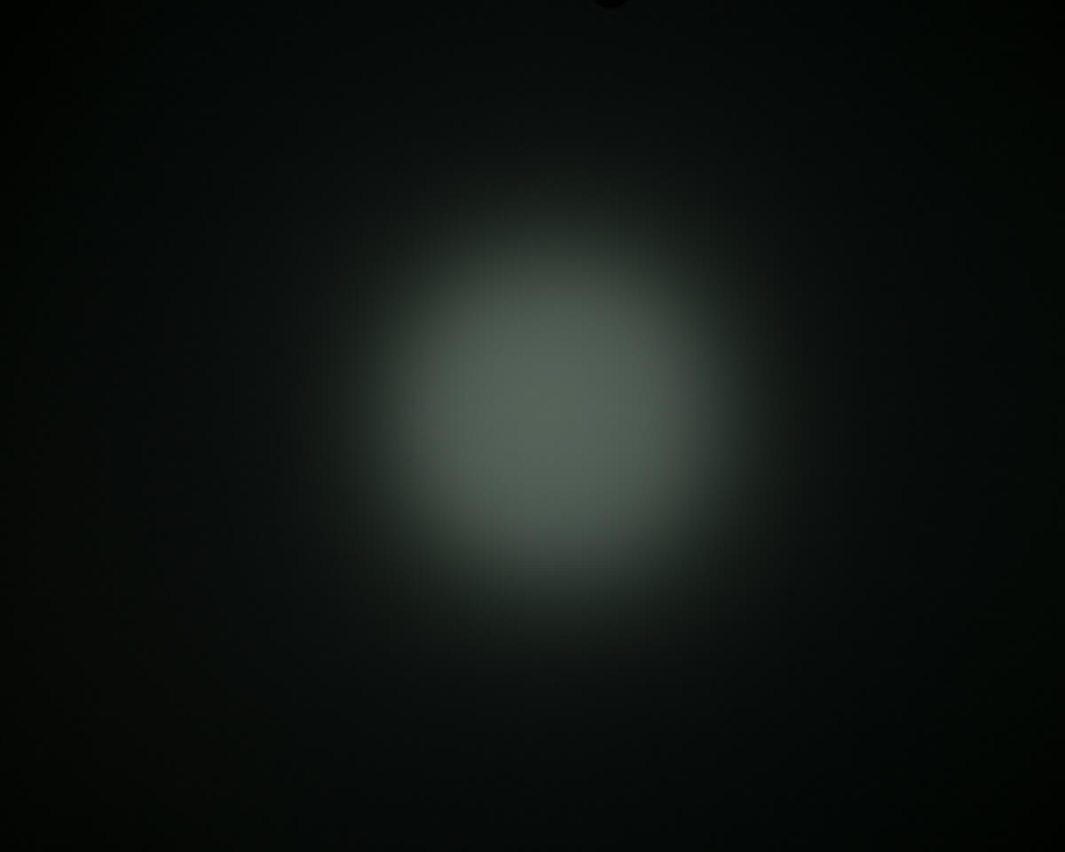 The emitter here is a Cree XP-L V5. The emitter sits behind a lightly orange-peeled reflector. The reflector isn’t very deep. The beam has a broad spot but not a ton of spill – it’s actually similar to a TIR (which I love) except for the small bit of spill.
