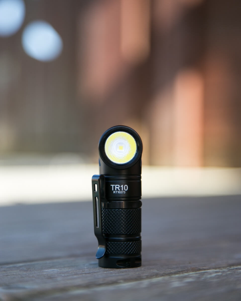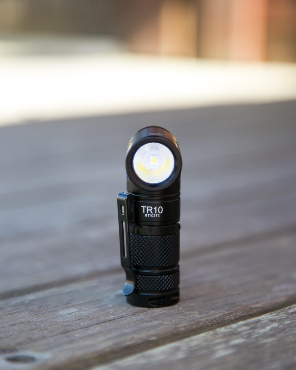 The Rofis TR10 flashlight can be twisted from a forward output to a right-angle output. It uses a Cree XP-L HI emitter, too. Read on!
