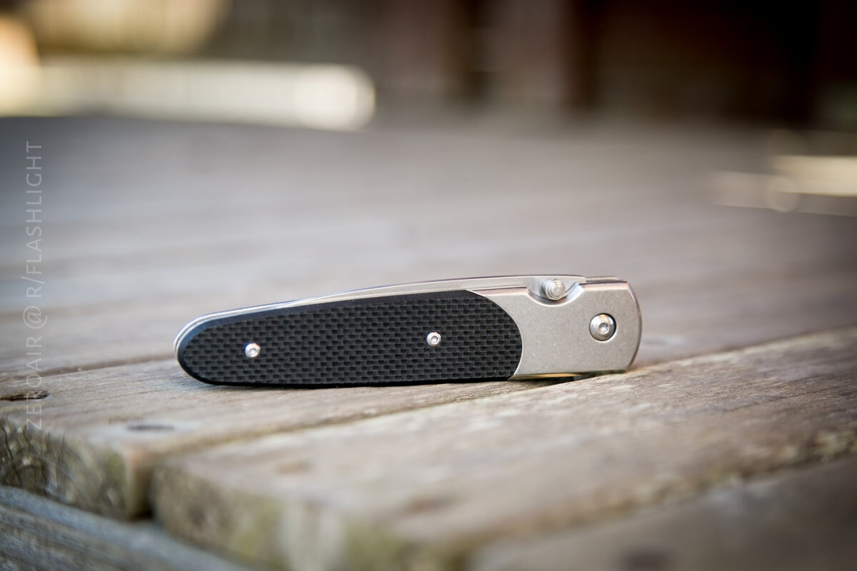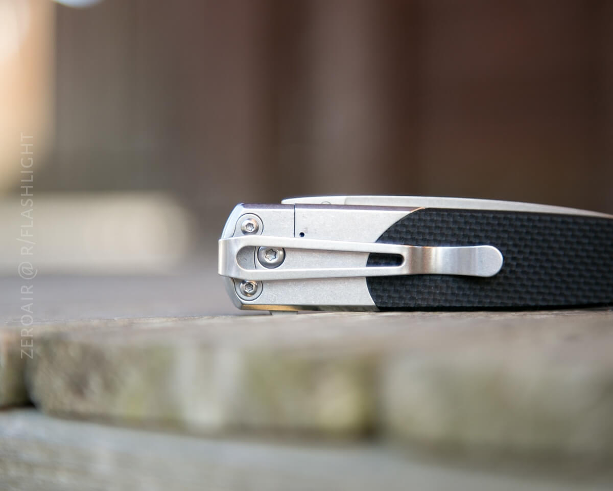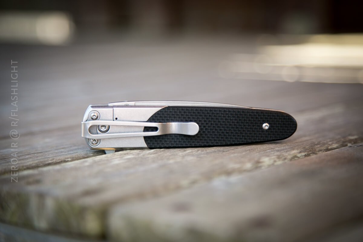 Locking is by means of a frame lock. The frame lock release isn’t sharp and is quite comfortable to actuate. Very much like on the Harnds Talisman, if you’re familiar with that knife. It also doesn’t require a ton of force.