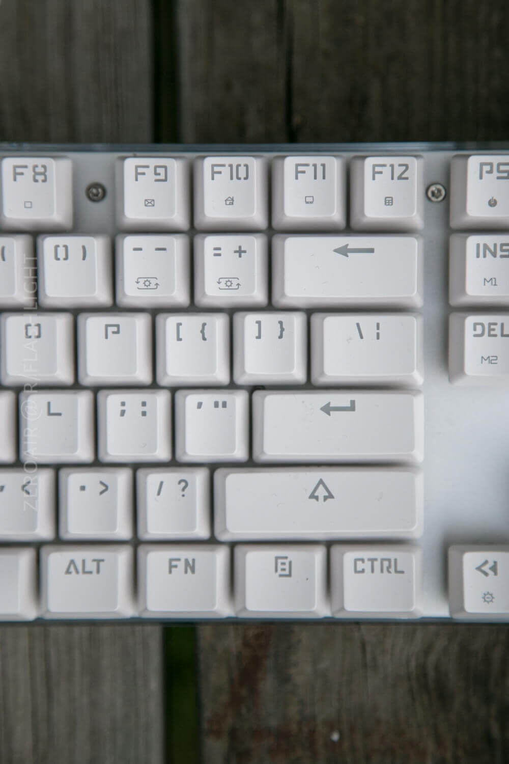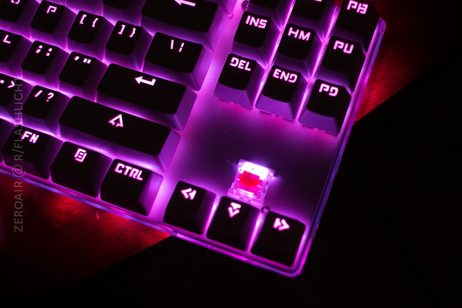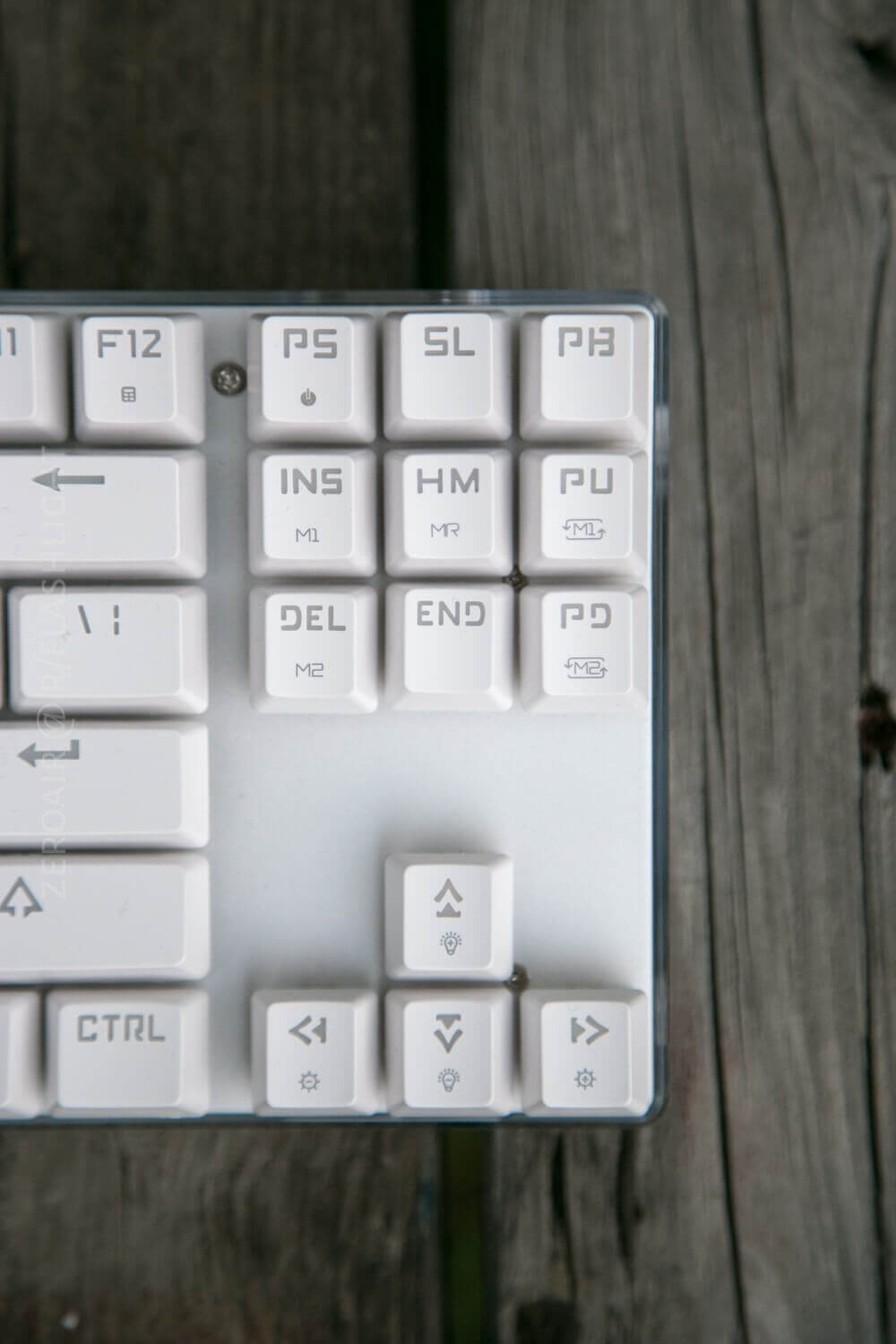 This is a TKL layout, with the only slight variation being that the FN row sits right at the top of the number row without the normal spacing. That’s a difference of maybe 4mm, and while that’s bothered me on other boards (i.e., it bothered me on the CK104), I haven’t found it to be noticeable here.