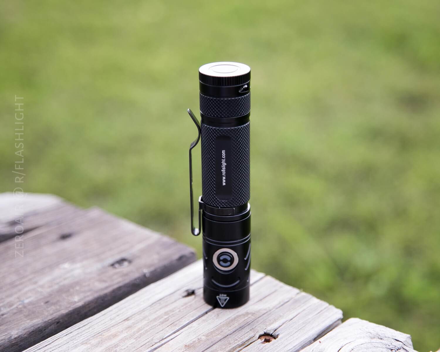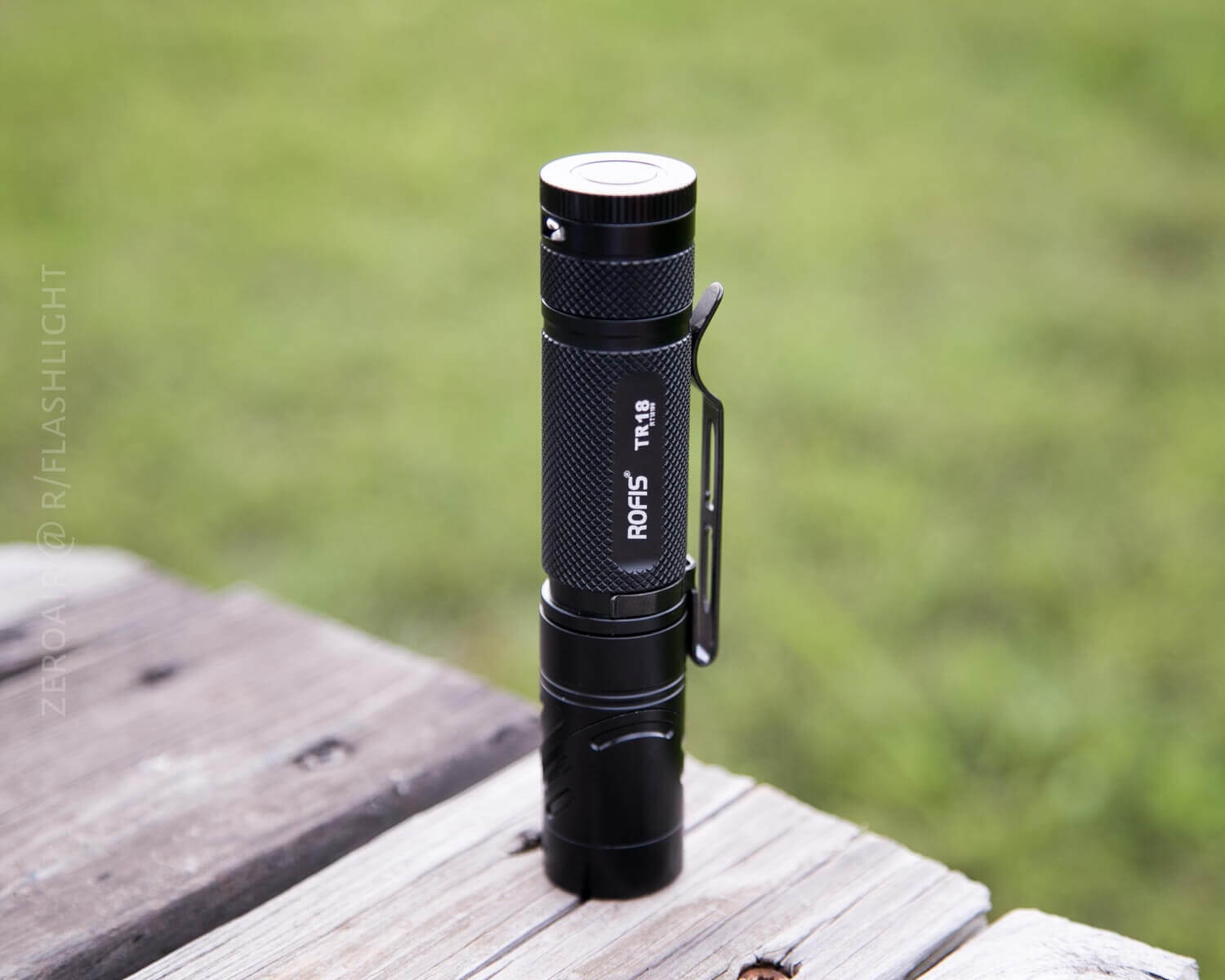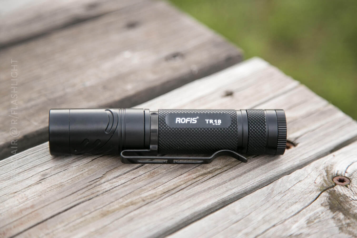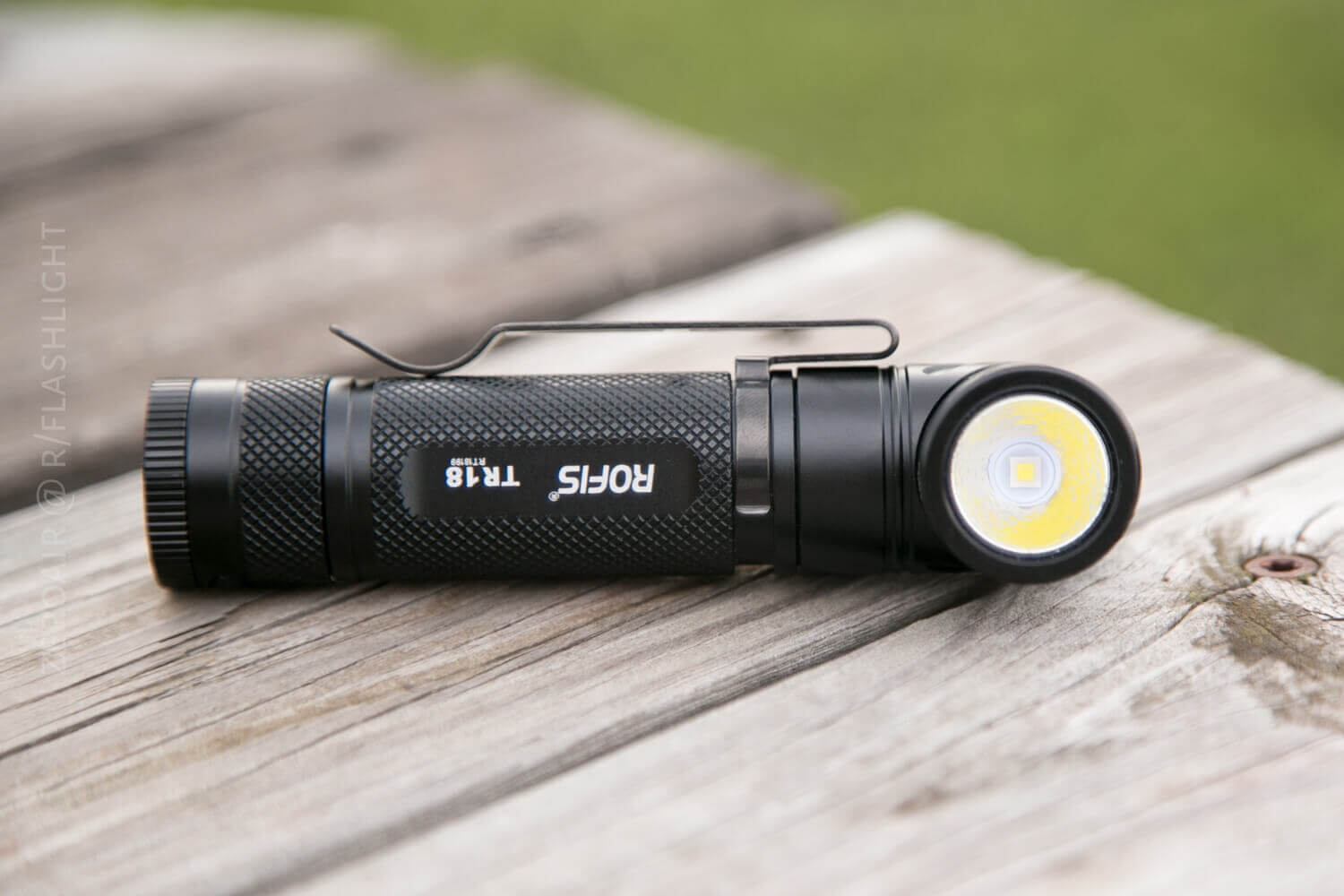 The Rofis TR18 flashlight can twist from forward to right-angle. It uses a Cree XP-L HI emitter and runs on one 16340. Read on!