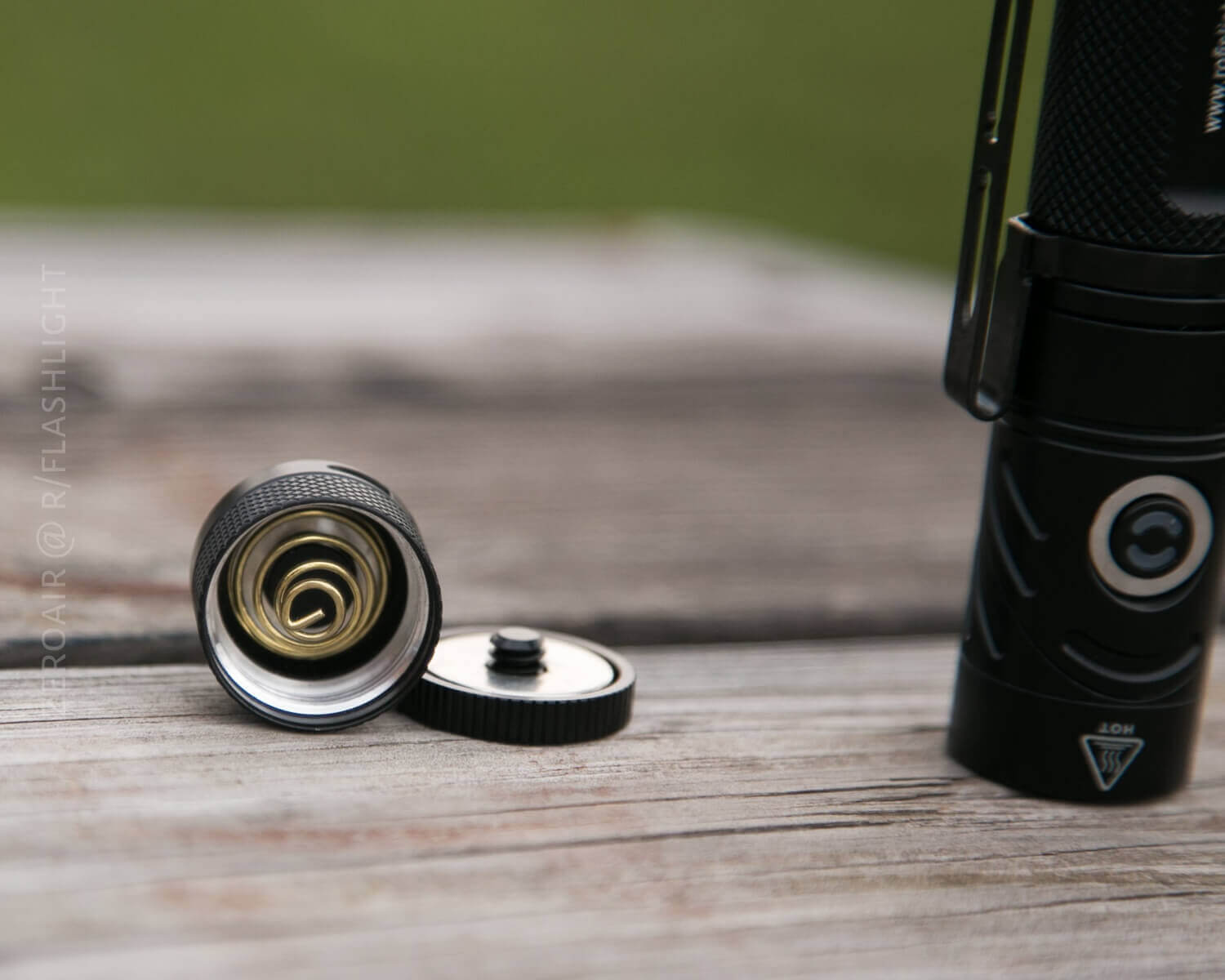 The TR18 is powered by a single 18650. All my use and testing have been with an EVVA-protected button-top 18650. Flat tops will work (there’s a spring on the head and tail end).