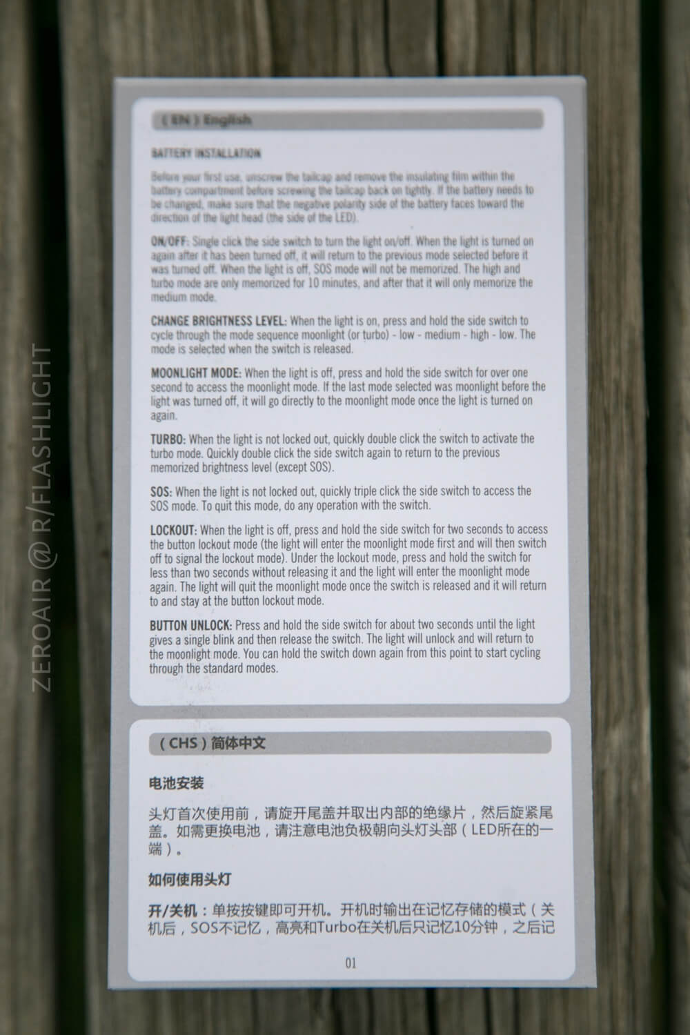 Olight has backed away from their very plastic package. I’m extremely grateful for that. I just don’t like plastic packages. They also don’t seem to be holding our hand quite as much with directions like “read this first.” That said, the package lends itself to opening in a very…. “showy” way, which is cool. The box has tons of information (maybe a full manual’s worth?) and a few photos too. Runtimes, features, etc. It also has a hang tag, so it’s display-ready, too.