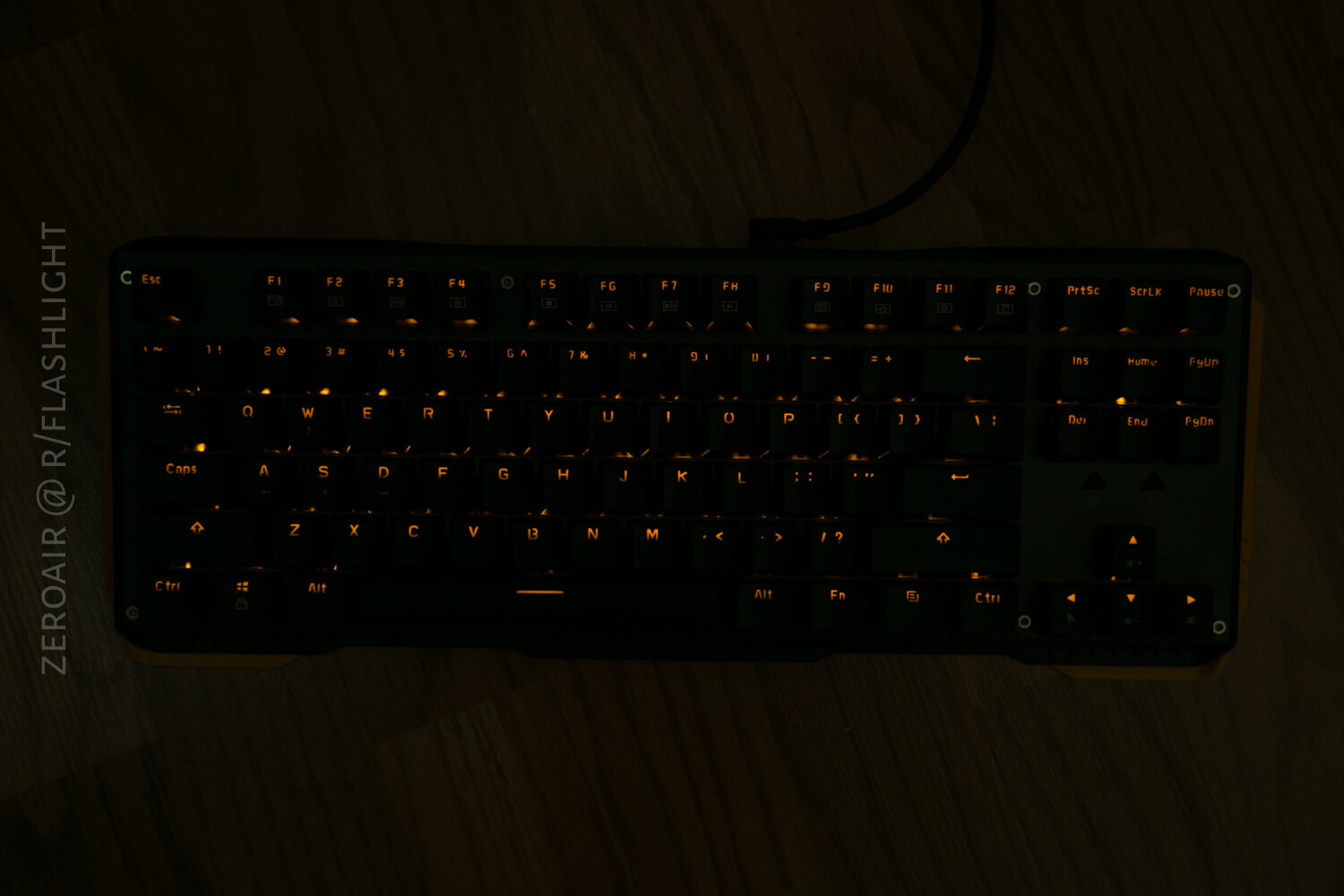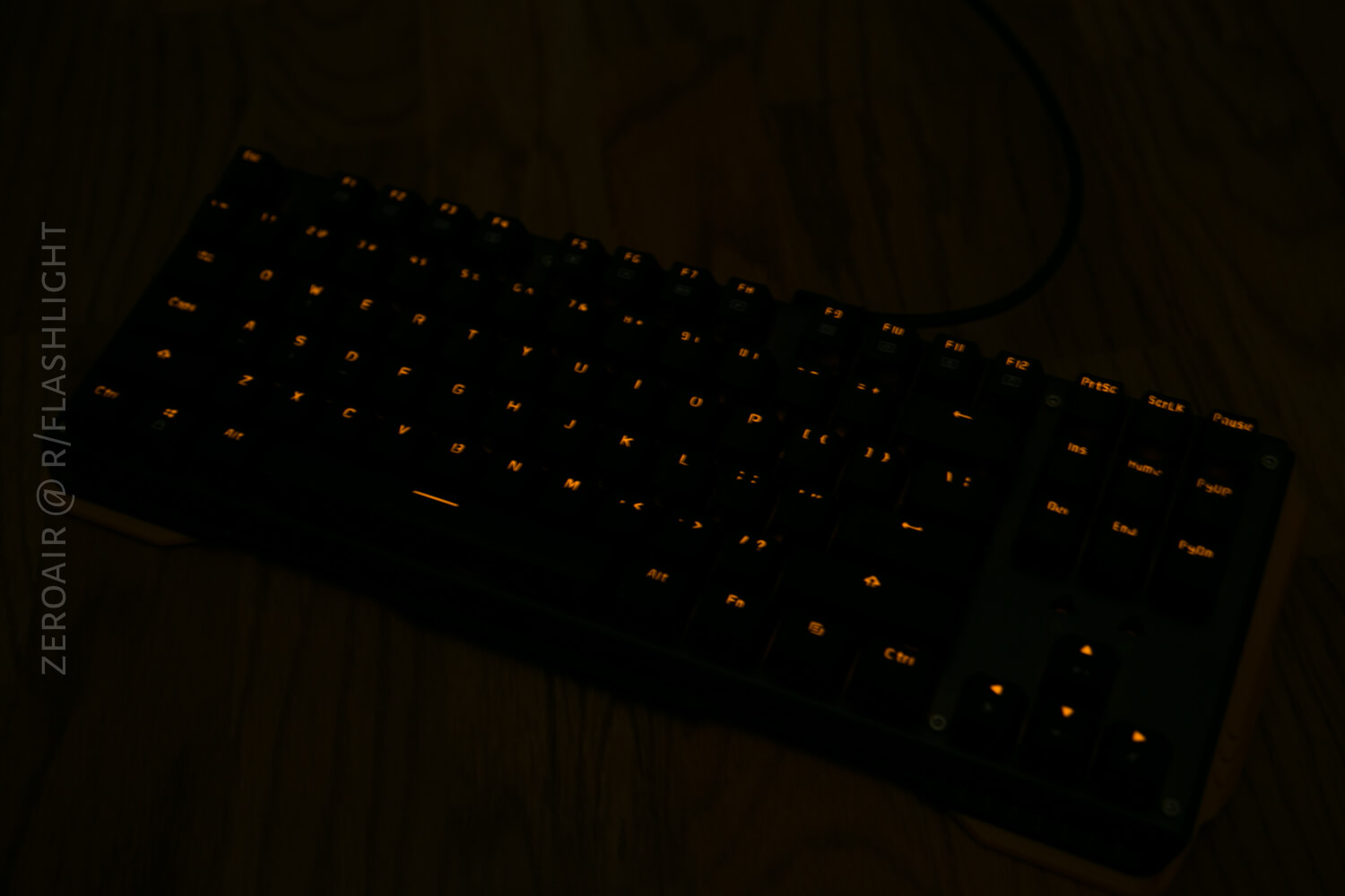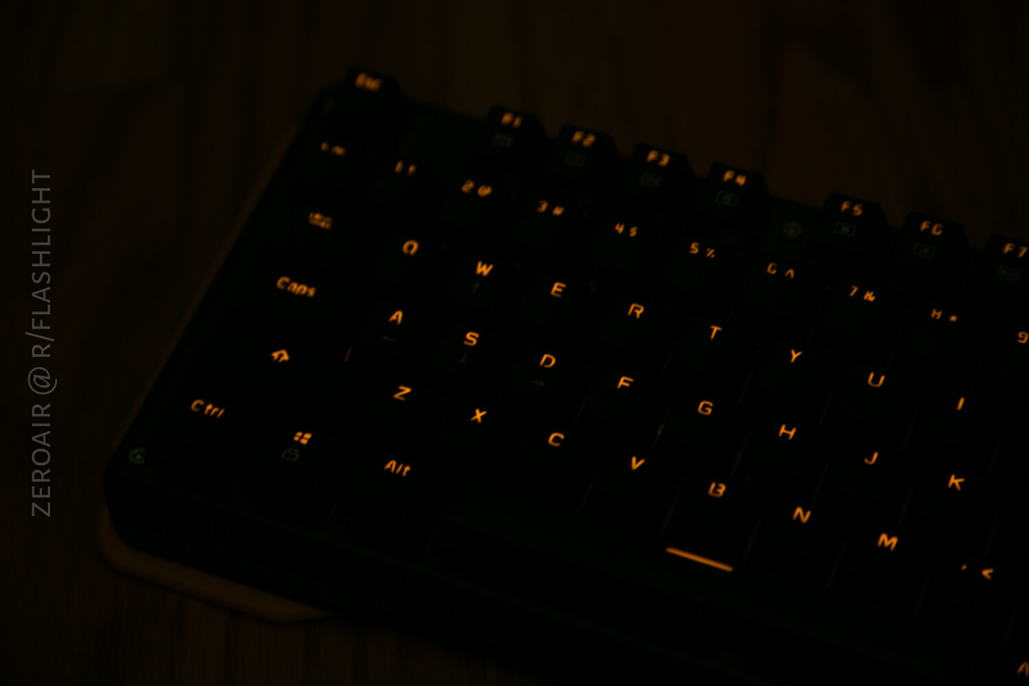 Of course on this board there isn’t actually any RGB. Just orange. There are a number of LED options that can cycle, mostly covered in the Interface section above. Here are a few shots of the emitters in action. They aren’t anything special, and I wish they were just a little more orange, for being called “orange.” Same with the case actually. But they’re fine emitters, not distracting, and fun to mess around with.