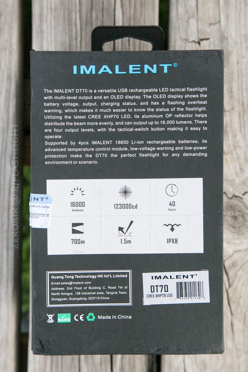 Imalent has released the Imalent DT70 flashlight, a flashlight featuring four Cree XHP70 emitters. It runs on four 18650 cells, and is quite floody! Read on!