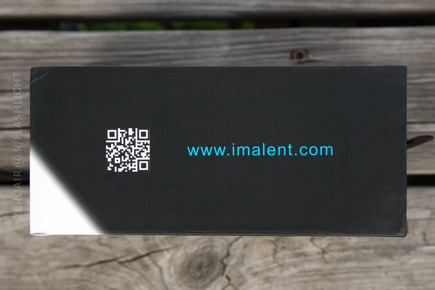 This large light ships in a large, thick cardboard box. It’s sealed with an Imalent authenticity sticker. Once removed, the front of the box folds open to reveal the contents. The box is printed with a little bit of information, but not much.