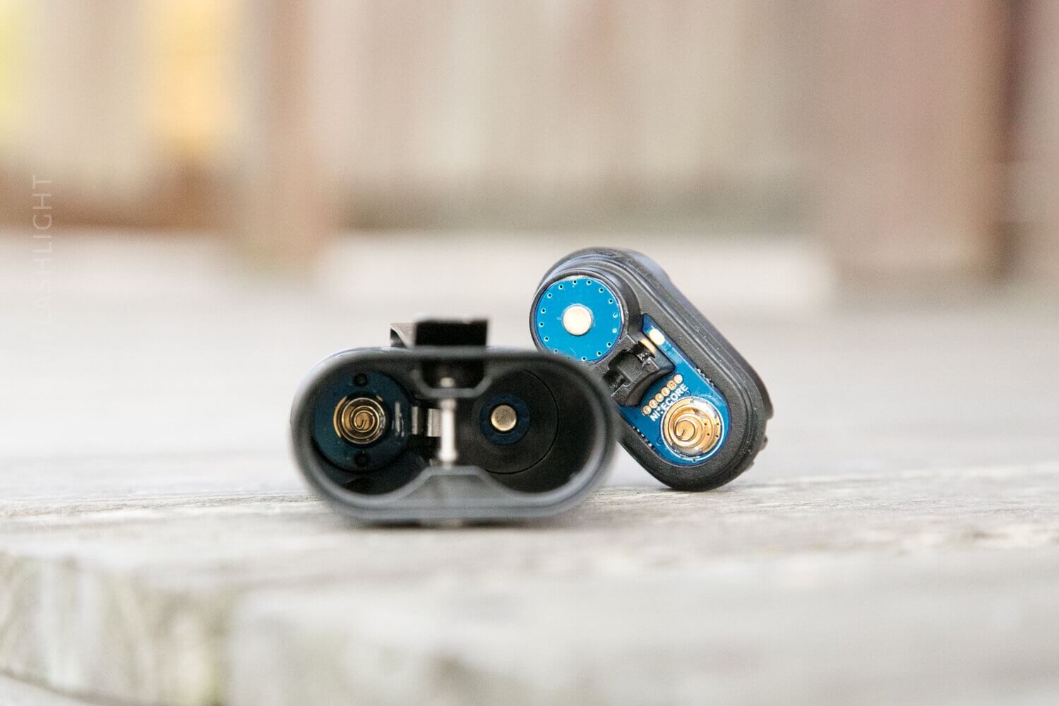 The MT22A is powered by two AA cells. The manual does not mention Li-ion support, but primary AA and rechargeable AA are good to go. All my testing was done with Eneloops. The tubes are directional, with mechanical reverse polarity protection; the cells will only work in the correct direction. That is, they work with the positive terminal toward the button, and the negative terminal toward the spring, on both sides. The cells will be opposing each other. I find that when putting the head back on the light, one must depress the ‘release’ button. I expect that’s by design, which means the head is essentially locked on. It also means that the head doesn’t “click” into place (and this is one of my complaints about the light).