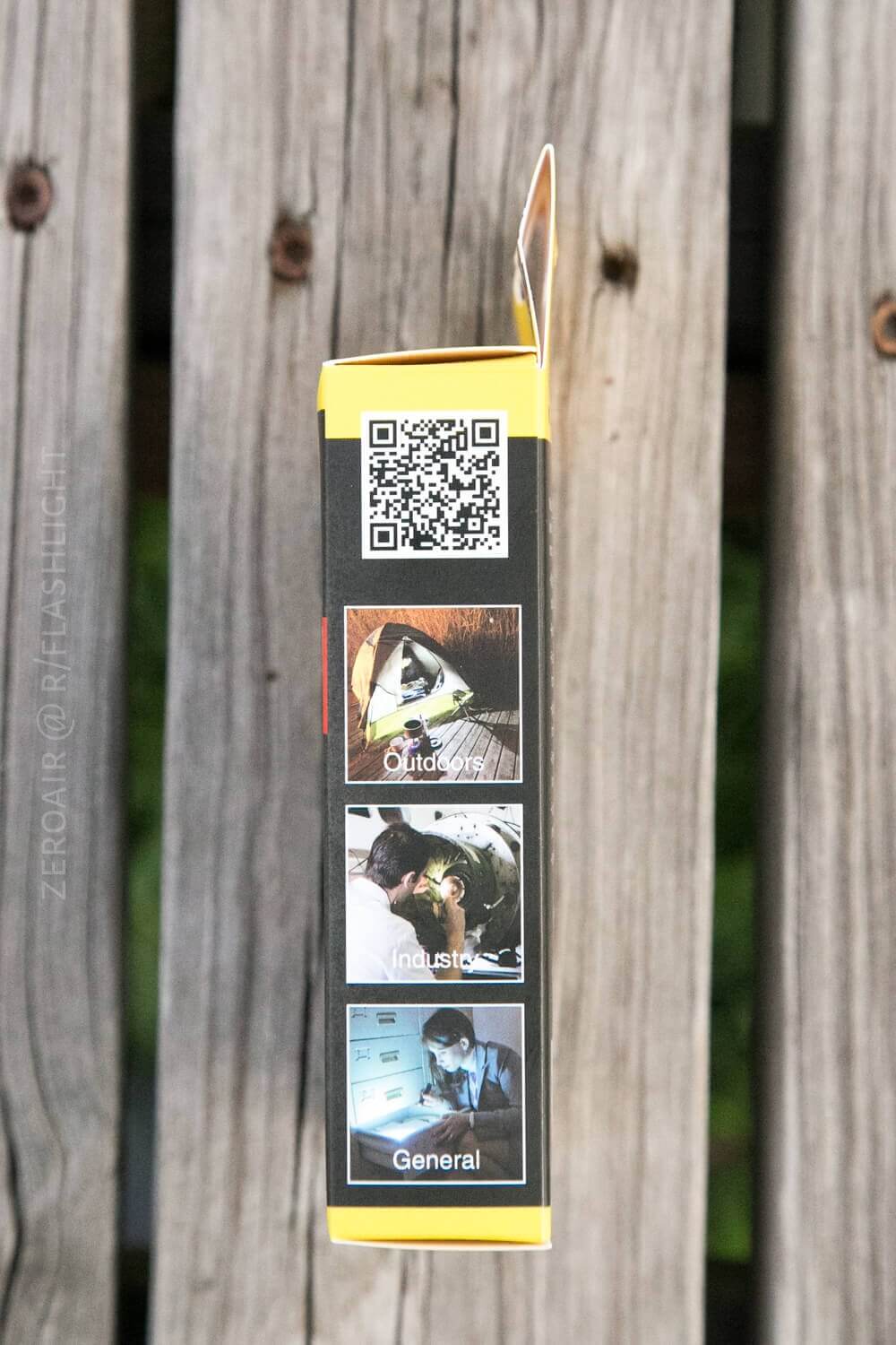 The yellow and black of Nitecore. Very ‘branded’. The package has a window, so you can see the light you’re about to open. The box has tons of wording and promises and such, and even a QR code for that guy out there who uses QR codes.