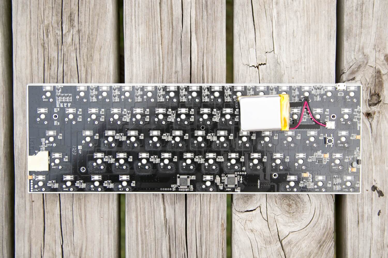 The battery connects with a two-wire tiny molex wire-board connector, and can be easily replaced. This is often a consideration when dealing with the battery life of the Anne Pro. I personally keep it connected enough not to really have to worry about the battery, but some users report changing the battery for something bigger. That’ll work, but bear in mind there’s not much room for something much bigger.