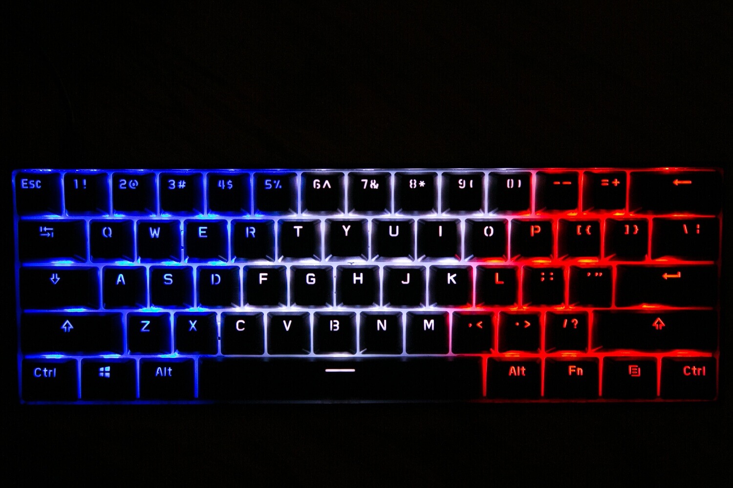 It’s also possible to use the Anne Pro app to mix colors in basically any way you choose, with individual keys having any color from the spectrum. It’s possible to make patterns, and responsive cycles, and … basically most things you’d want to do.