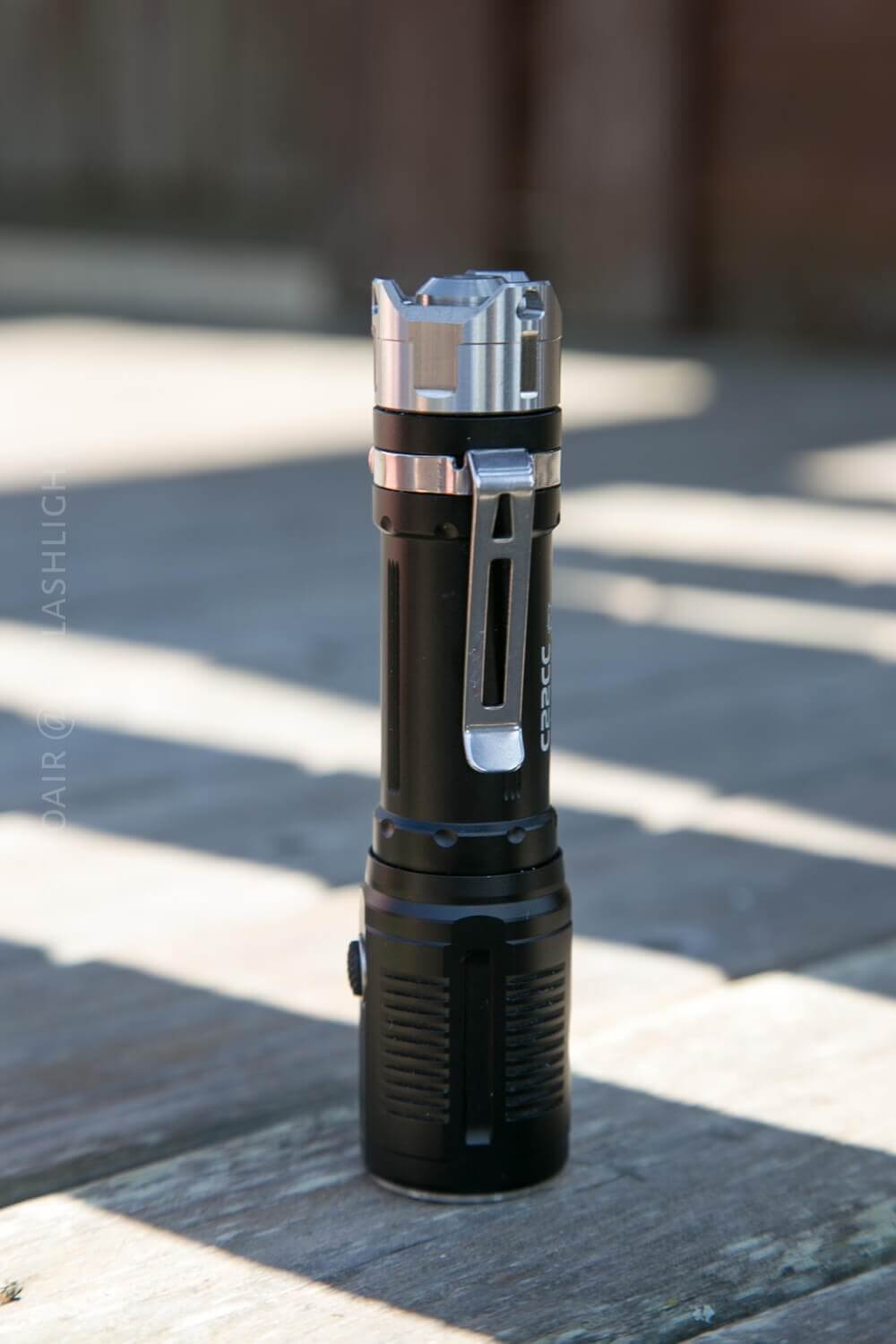 The main emitter is a Cree XM-L2 U2, and the secondary (side) emitter is a Cree XP-G2 R5. The man emitter is quite cool, and the second is quite warm. It’s a good combo, but the main could be a little warmer for my tastes.