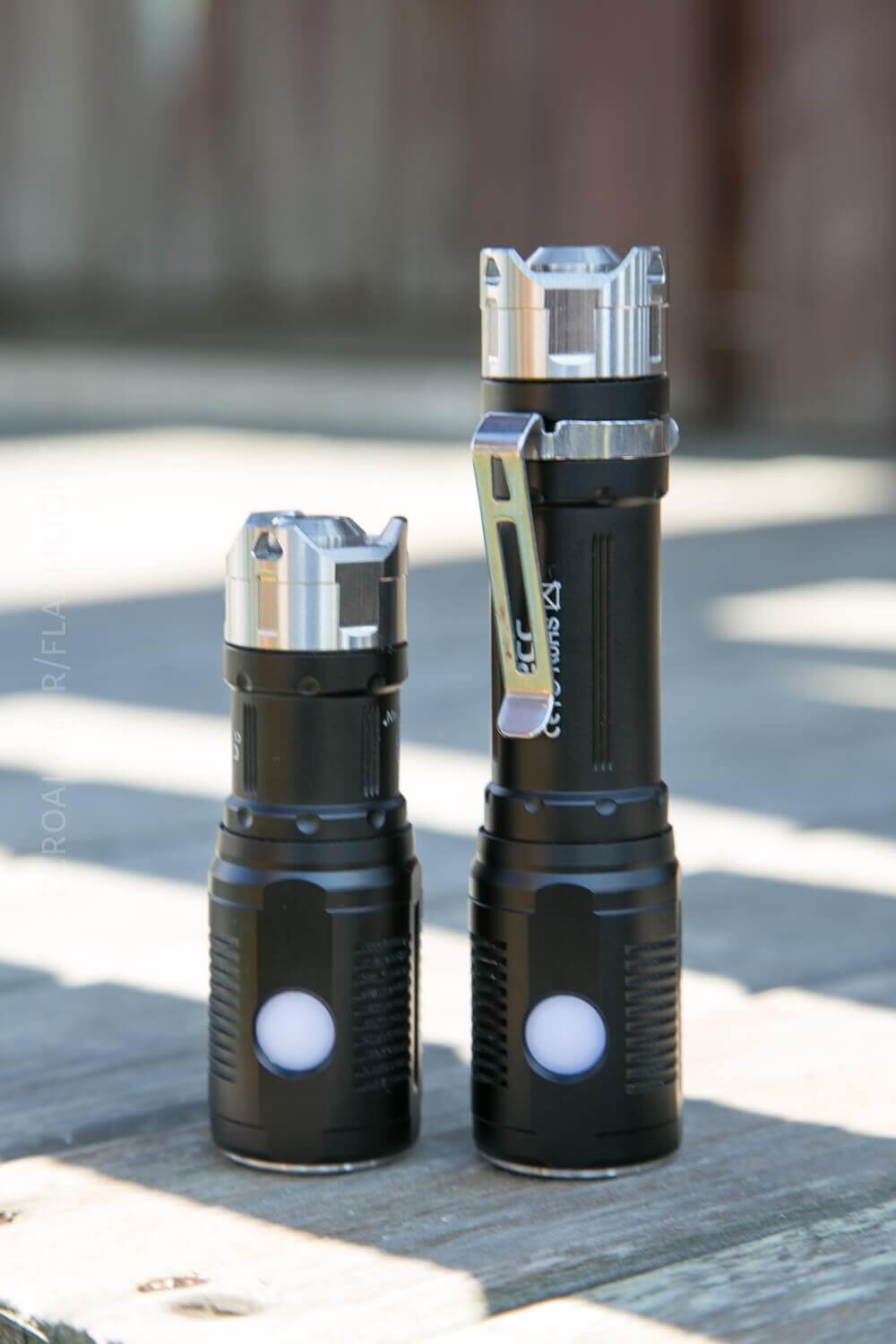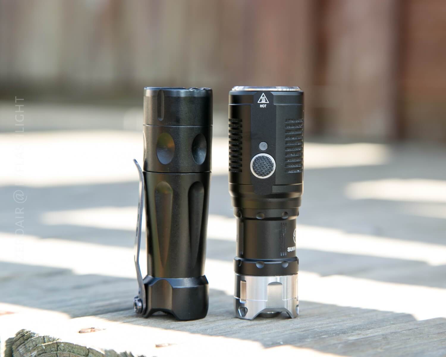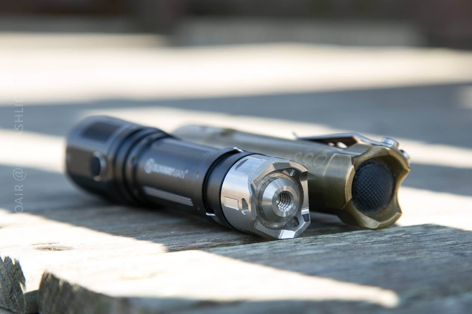 Both of these lights are well-built. They’re sturdy, hefty lights. Bear in mind, they have a stainless steel murder strike bezel on the tail end. The head bezel is a smooth, removable stainless ring.