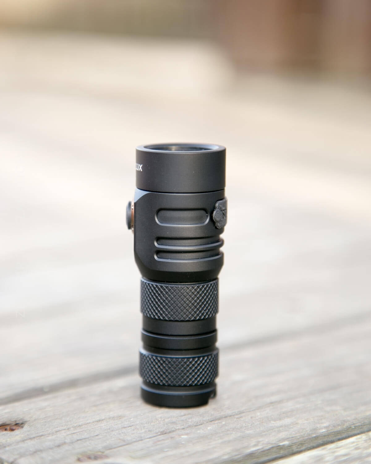 To operate the light, there’s a single side e-switch. It’s a nice-sized rubber button with a copper-colored ring. That’s kind of where the good points about the user interface end.