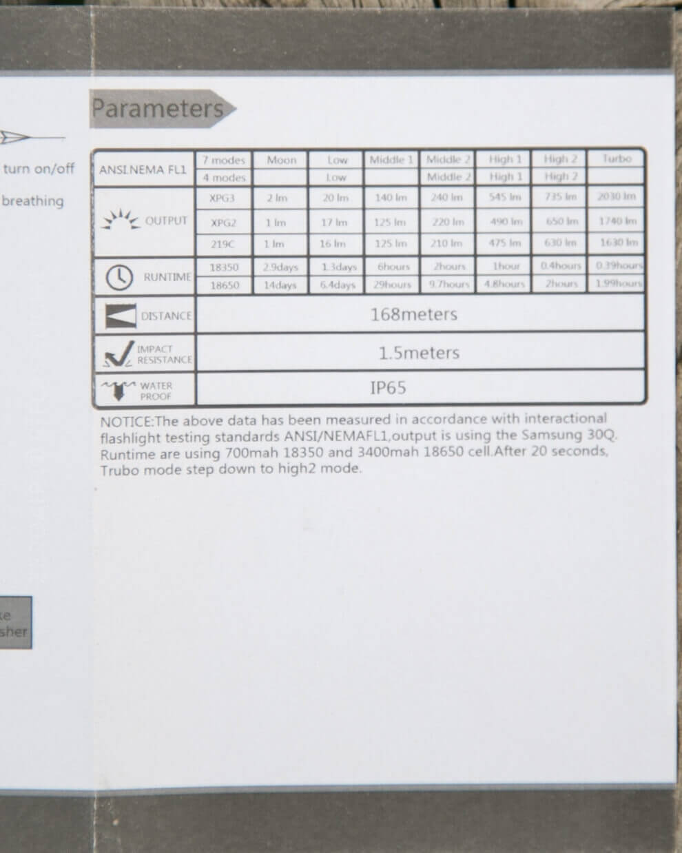 | Candela (Calculated) in cd (at 30s) | 100lux @ 4.768m = 2273cd |