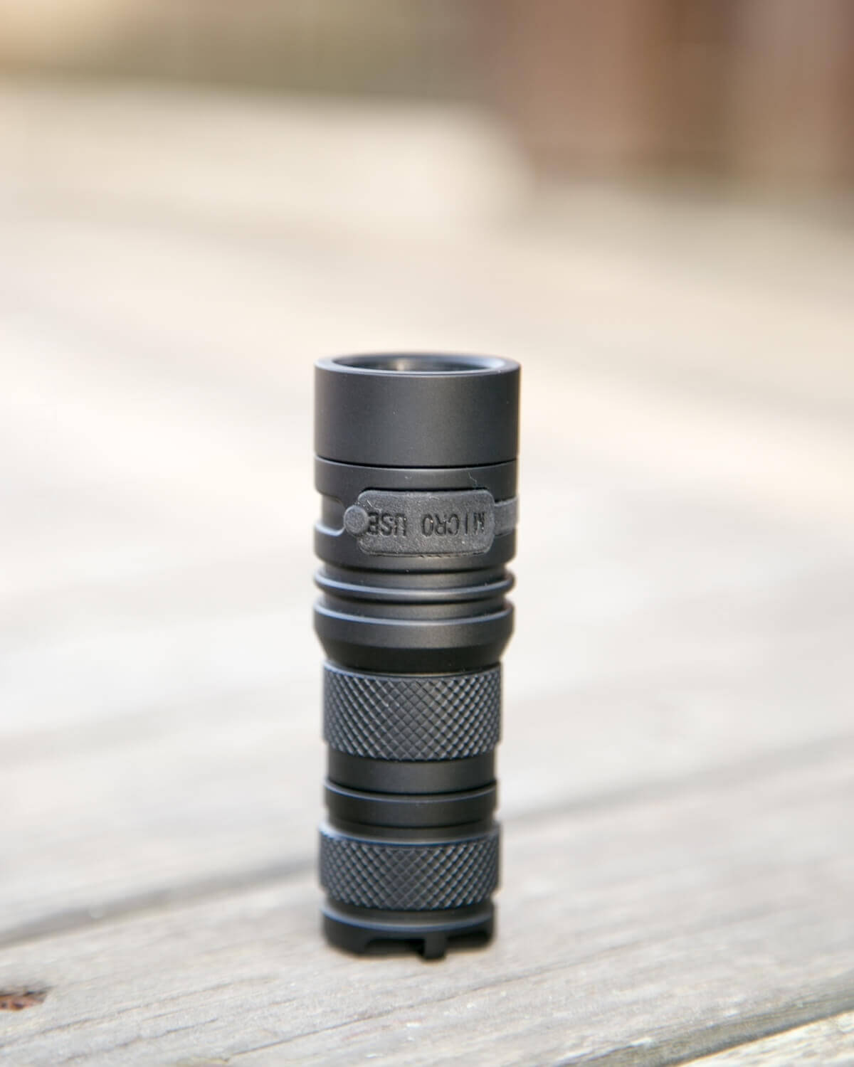 The S42 also has the ability to charge cells, with the micro-USB port on the side of the light. You can see the problem with the rubber boot meant for covering the port: it just basically flops loosely and doesn’t stay in its place. There is a fix, and if you order this light right now, you should get that fix from the start.