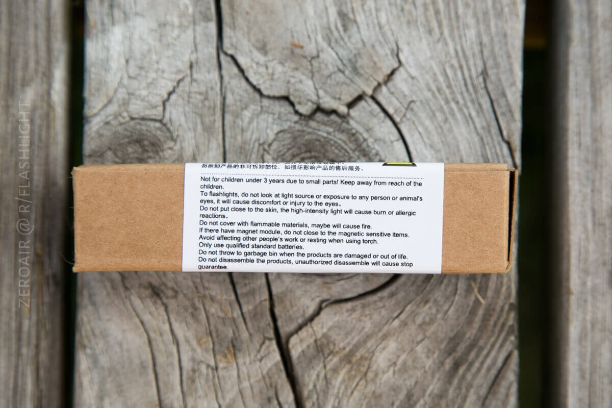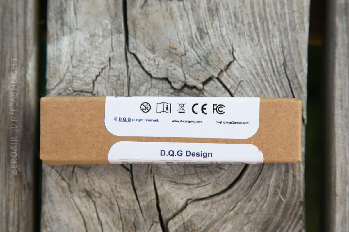 Just like all DQG lights, this one comes in a small cardboard box with little packaging and little branding. In fact, the label is just a sticker that’s used for all DQG lights – the same sticker. The light in the package will be check-marked. Very efficient.